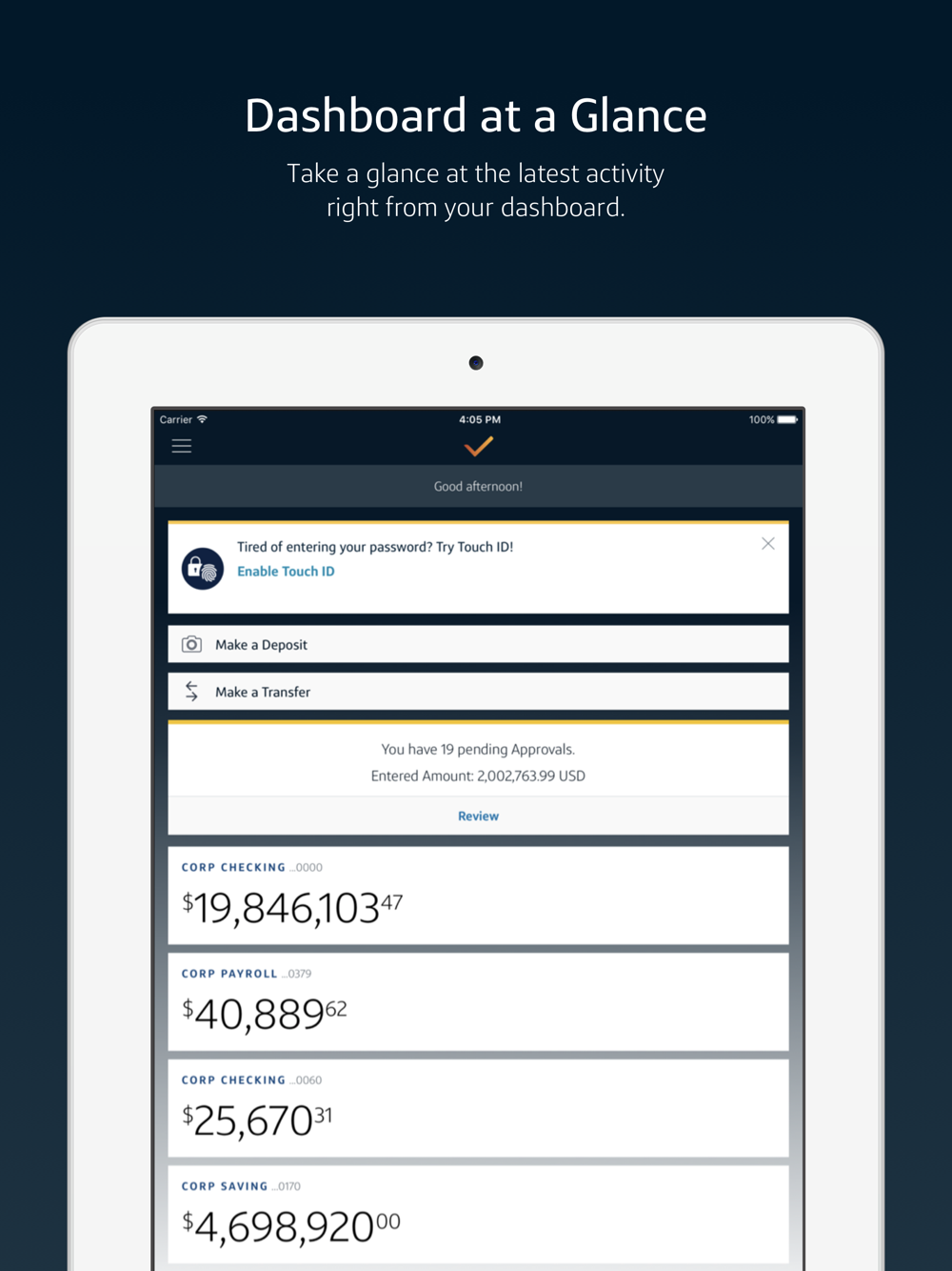 Once you’re enrolled, sign in following the instructions provided by your company’s Intellix Administrator or Treasury Management Client Services. After you’ve authenticated, you’re free to start managing your accounts on the go.