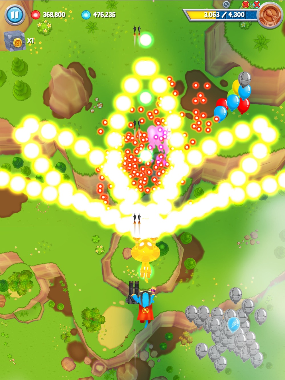 Endless legions of colorful bloons in outlandish shapes and patterns are invading Monkey Town and only Super Monkey can stop them! Equip dozens of powerful weapons, unlock never-before-seen Super Monkeys, and use dozens of screen-clearing powerups to pop every bloon and achieve a perfect diamond ranking.