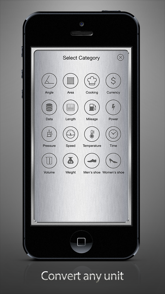 Elegant and powerful unit converter with 16 categories. It converts most of the units you can think of. Very convenient and easy to use with the ability to create custom unit list for each category.
