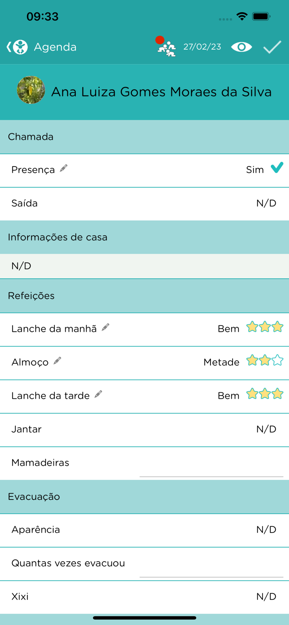 * Diário: Informe as atividades dos alunos, refeições, evacuação, etc. e os pais terão acesso instantâneo às informações. Como estava a participação nas brincadeiras e tarefas? Ele estava animado? Brincou com os coleguinhas? Fez todas as refeições? Comeu bastante ou pouquinho? Tomou o medicamento?