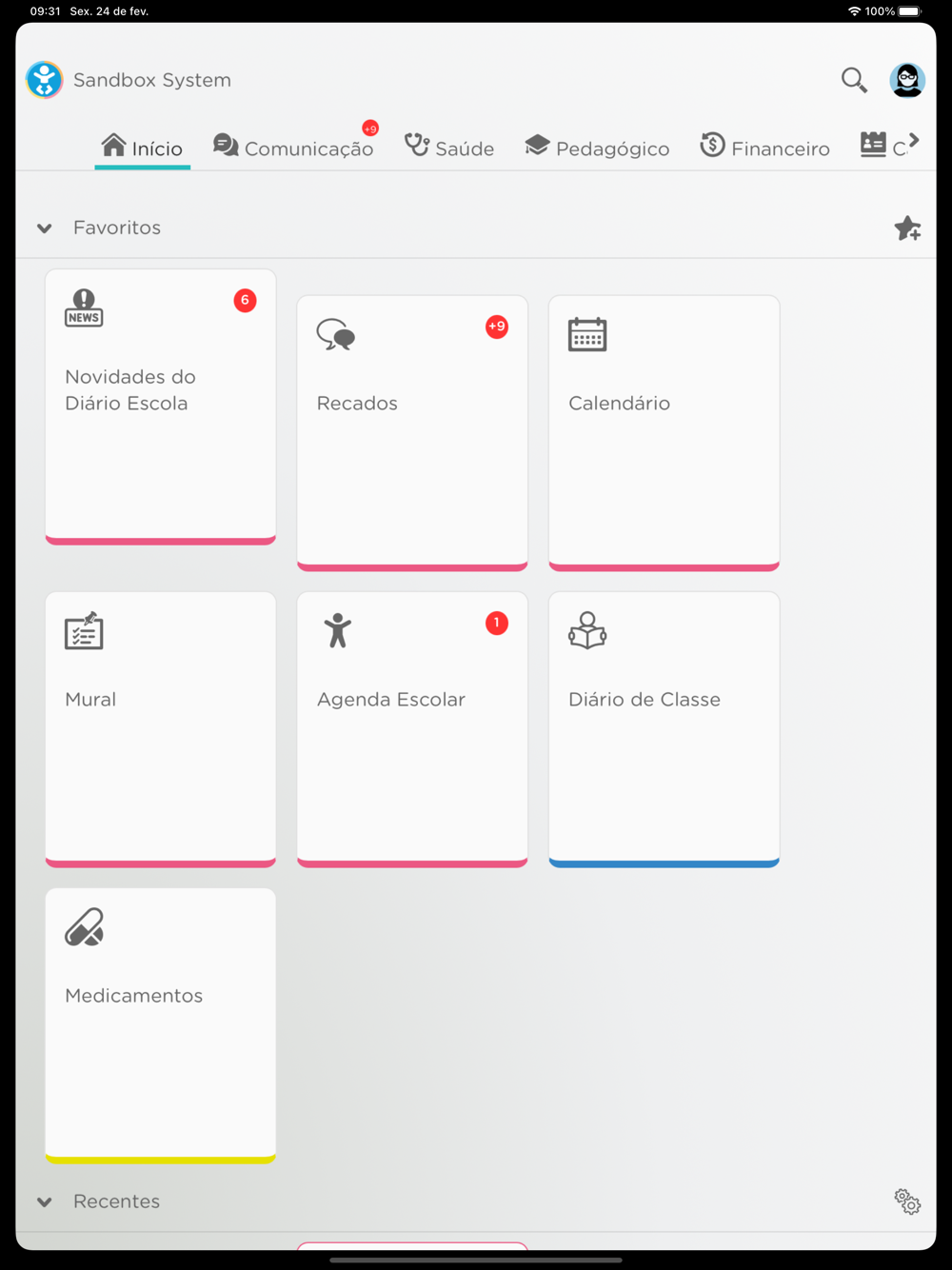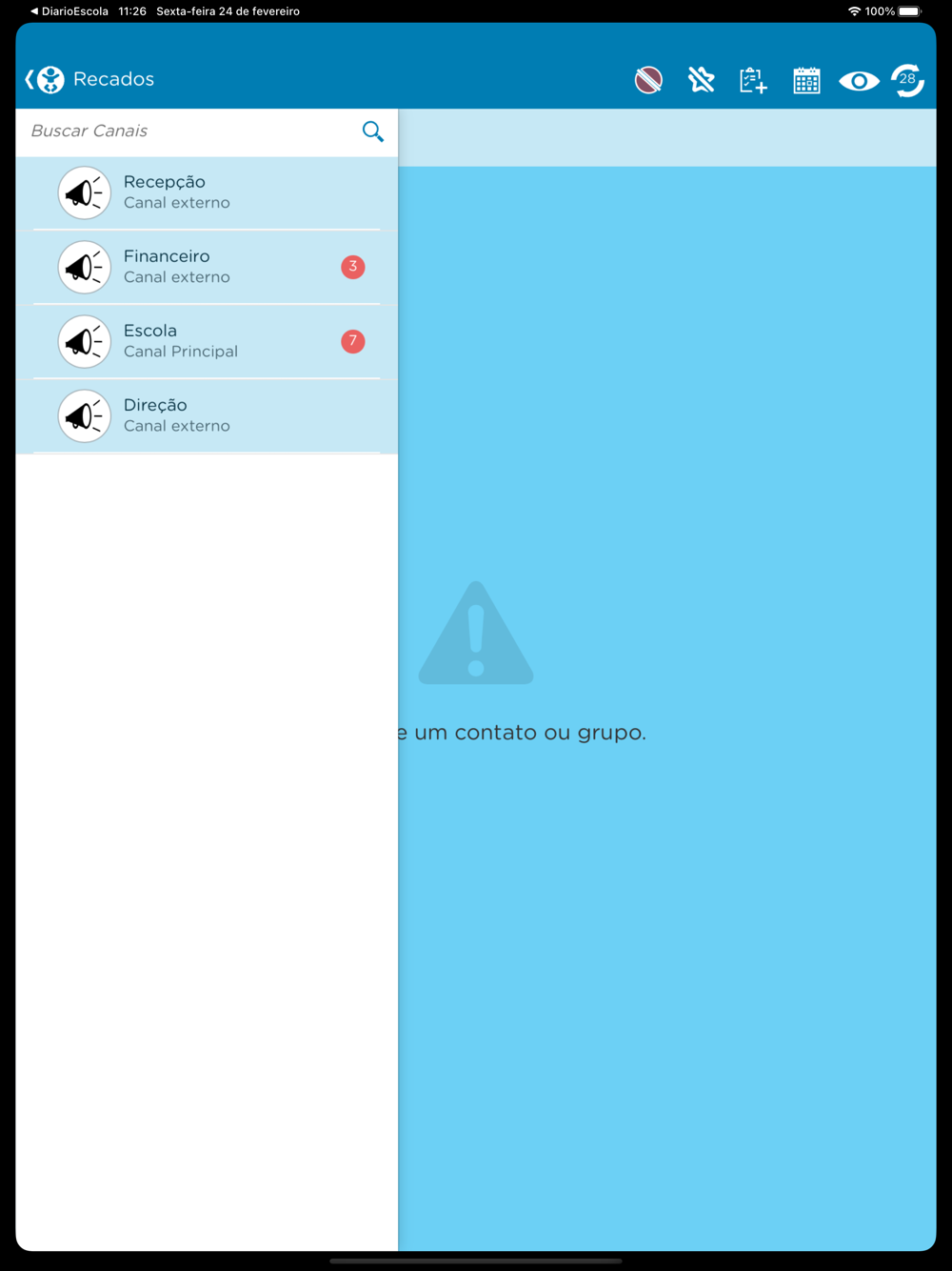 * Dados: tenha o cadastro dos responsáveis, alunos, profissionais e da própria escola diretamente no seu tablet