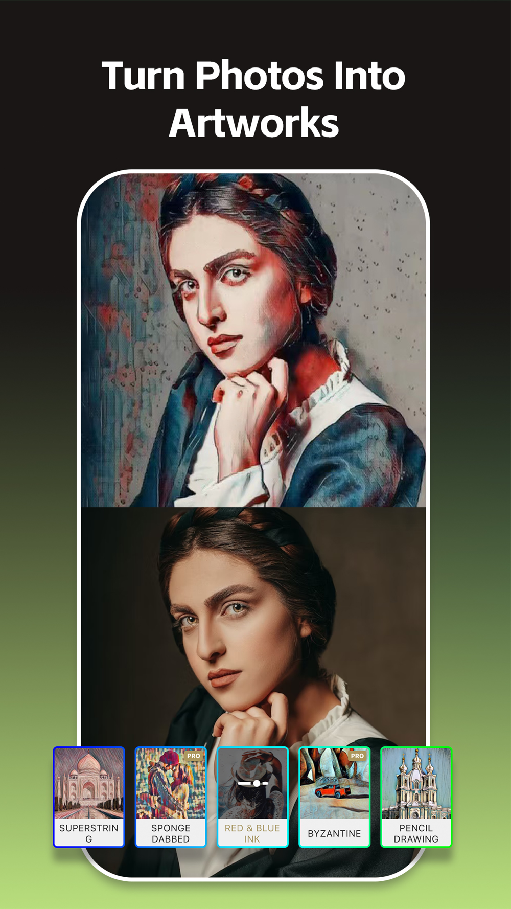 One-click to turn your photos into artistic works, and support to adjust the strength freely.