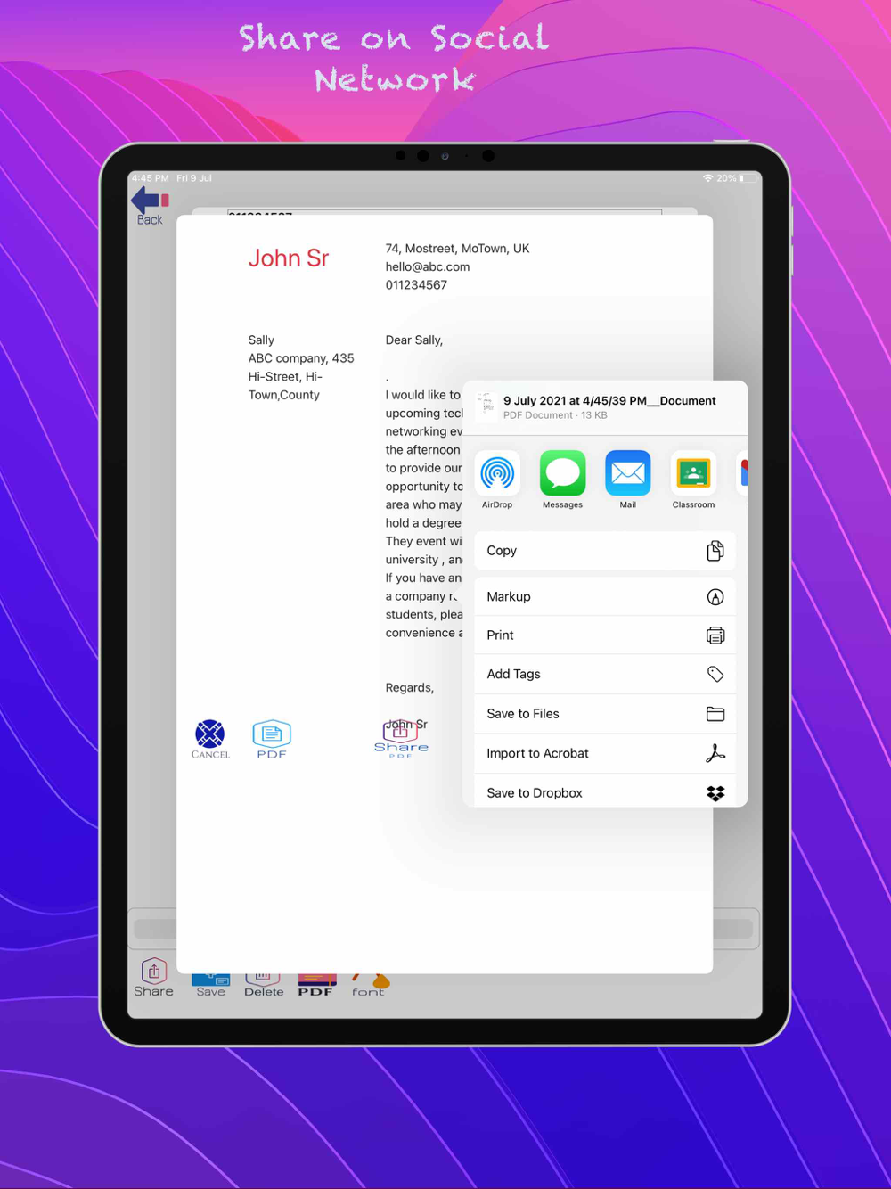 Easily share your text and files later! (Works with Evernote, Dropbox, Google Drive, OneDrive, Facebook, Twitter, Snapchat, WhatsApp and other iOS supported sharing apps.)