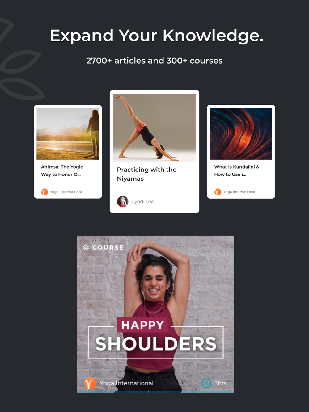 With the Yoga International app, you can enjoy thousands of yoga classes, guided meditations, and pranayama practices from world-class teachers wherever you are. Try us free for 7 days.