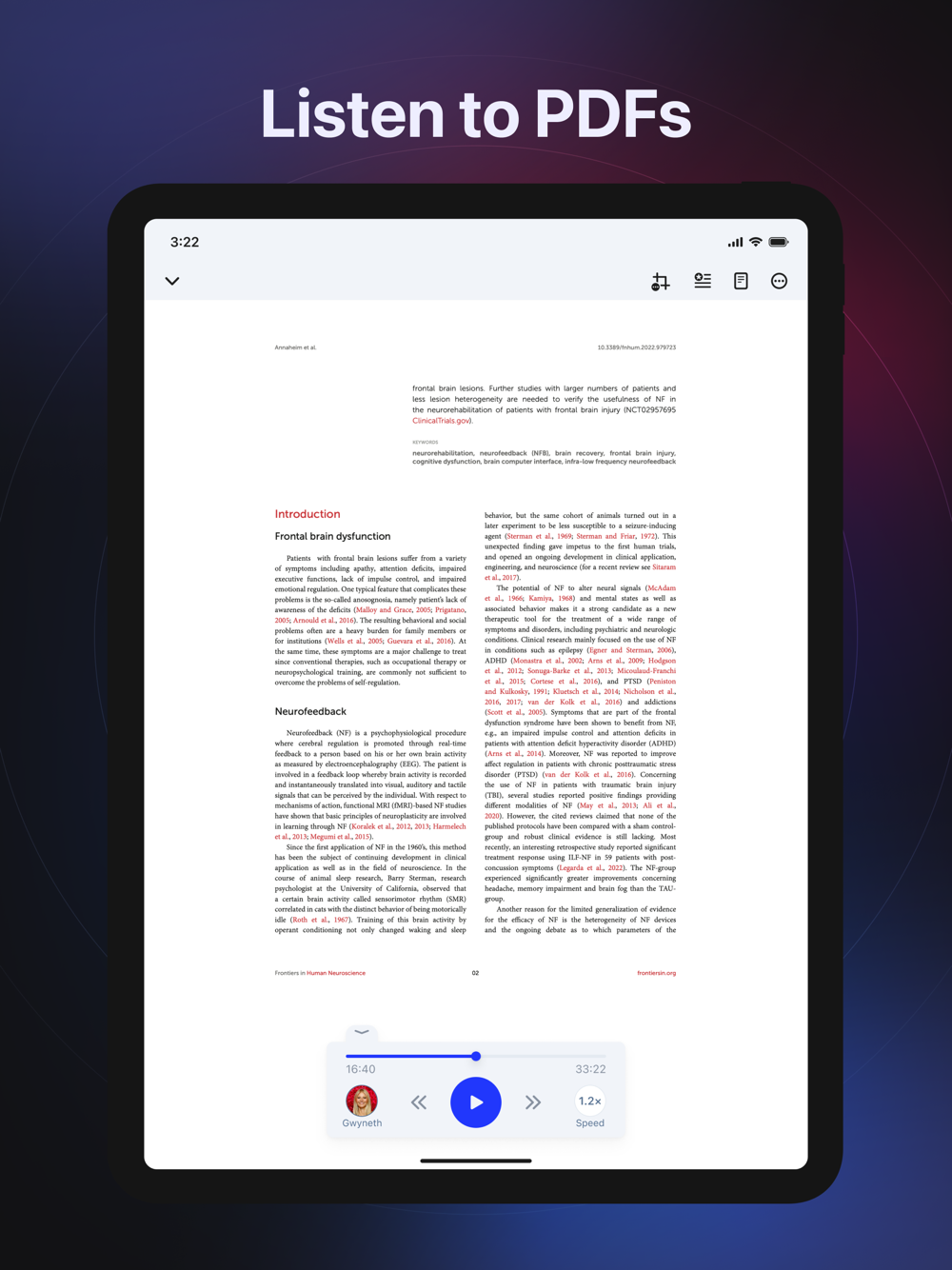The text is highlighted and perfectly synced, word for word, with the voice reader to help you read along. Reading & listening helps you retain more.