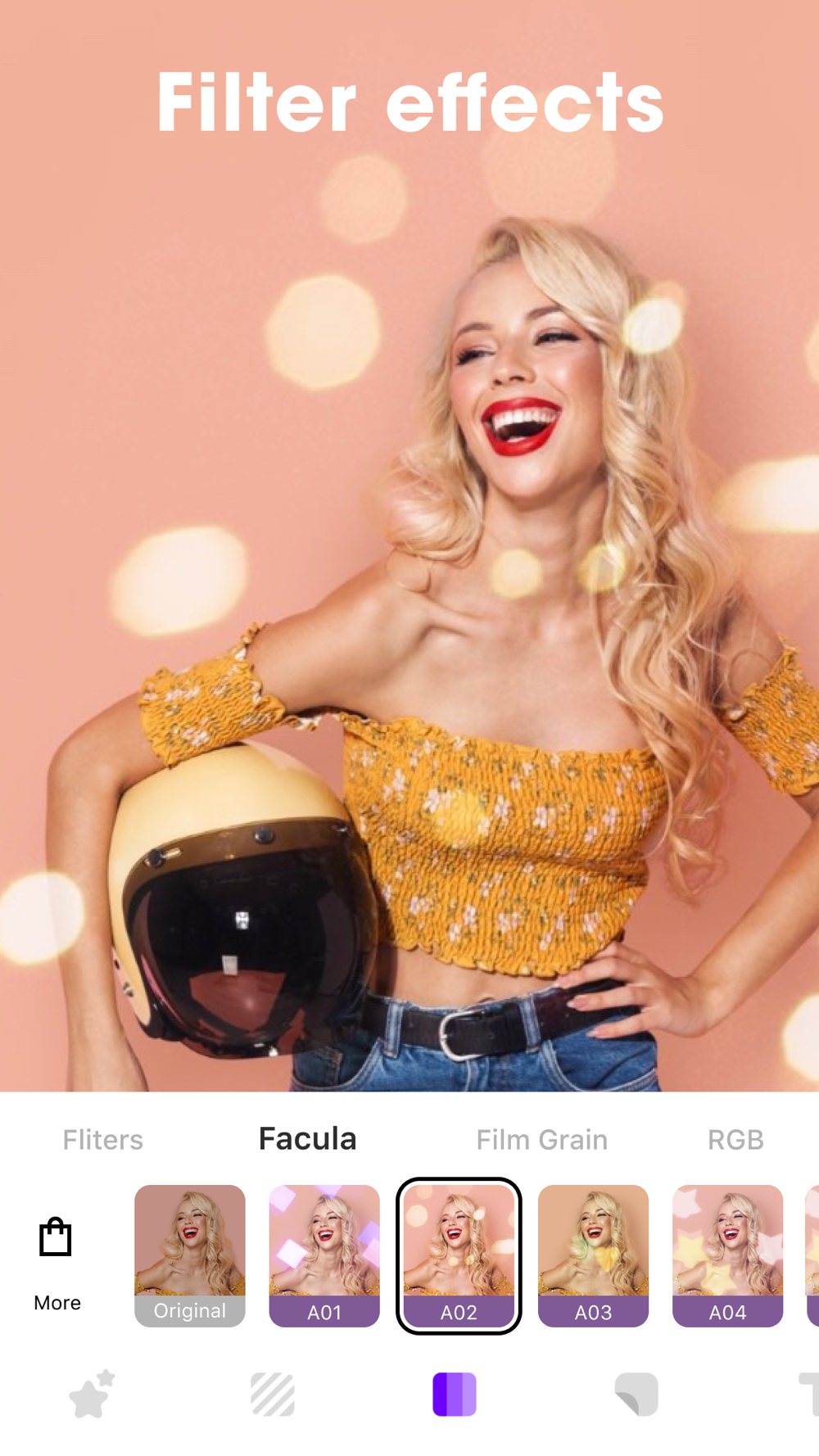 More than a dozen stunning filters are available, glitch effects & blur background and so on. These creative, colorful, and customizable filters can be applied both globally and individually on your photos.