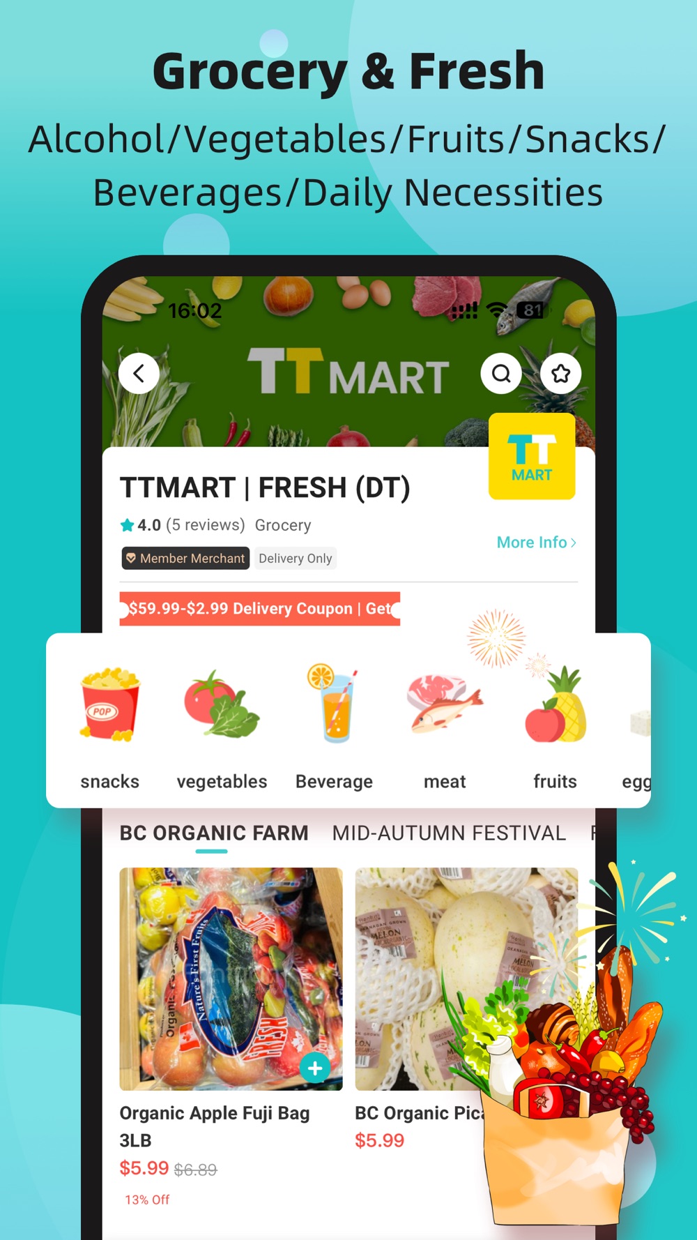 You can now order grocery and convenience store items on Fantuan! Unlimited selections of daily essentials, fresh produce, Asian popular snacks and more delivered to your door!