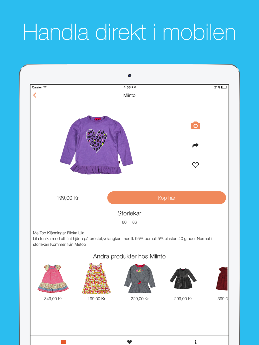 Hittar du ett plagg du gillar kan du gå direkt till webbutiken och genomföra köpet i mobilen.