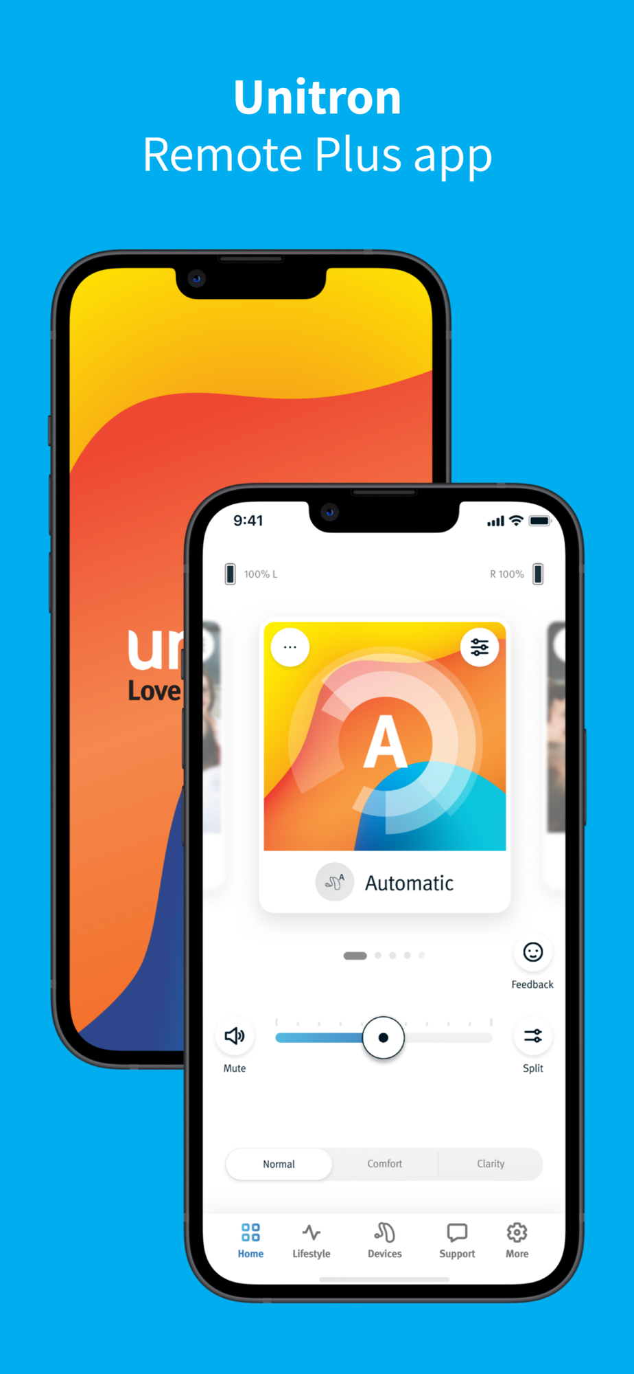 The Unitron Remote Plus app is your companion Unitron hearing aid mobile application designed to empower you along your hearing journey.