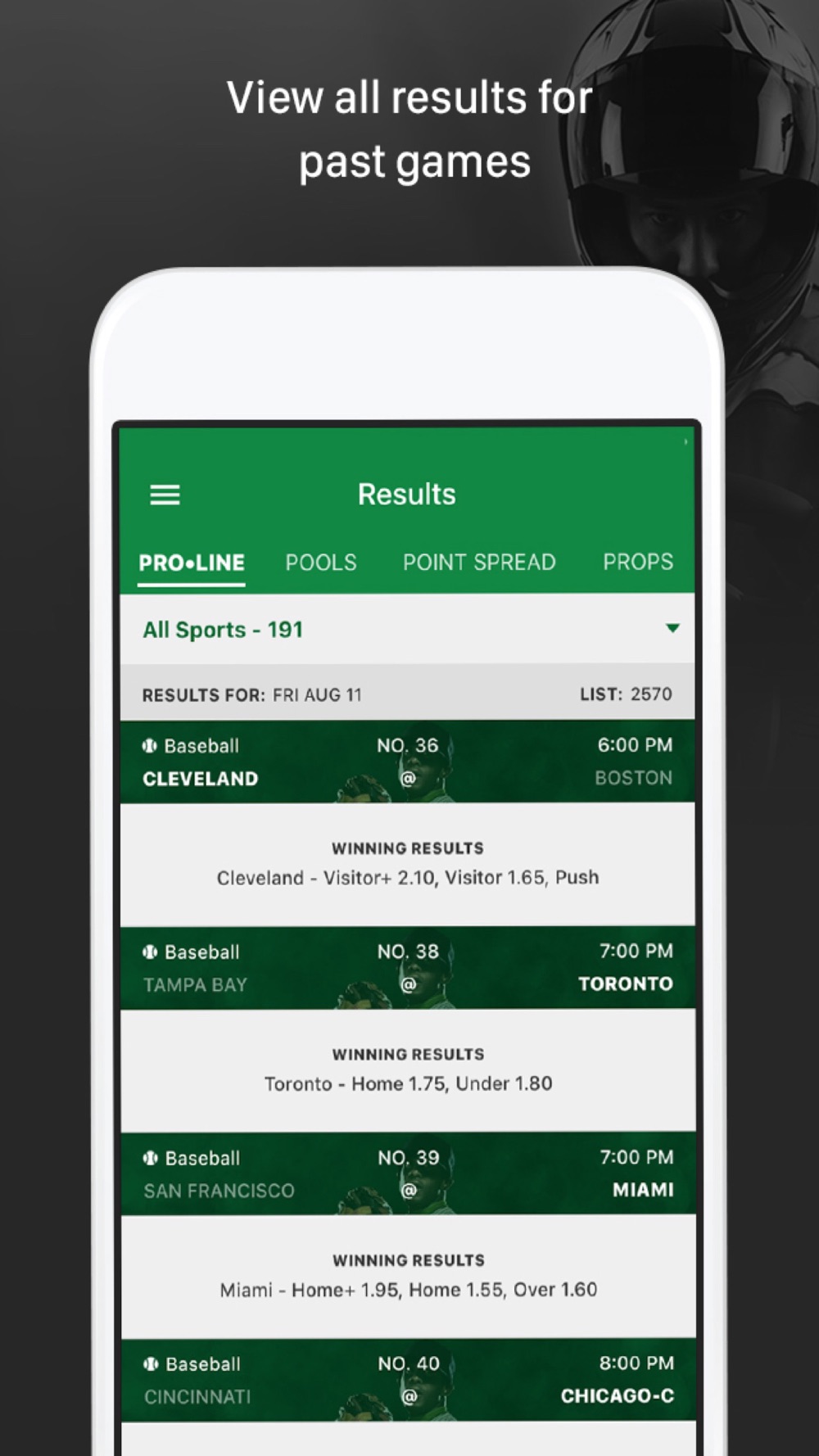 Get way into the game with the all new official PRO•LINE app from the Ontario Lottery and Gaming Corporation!