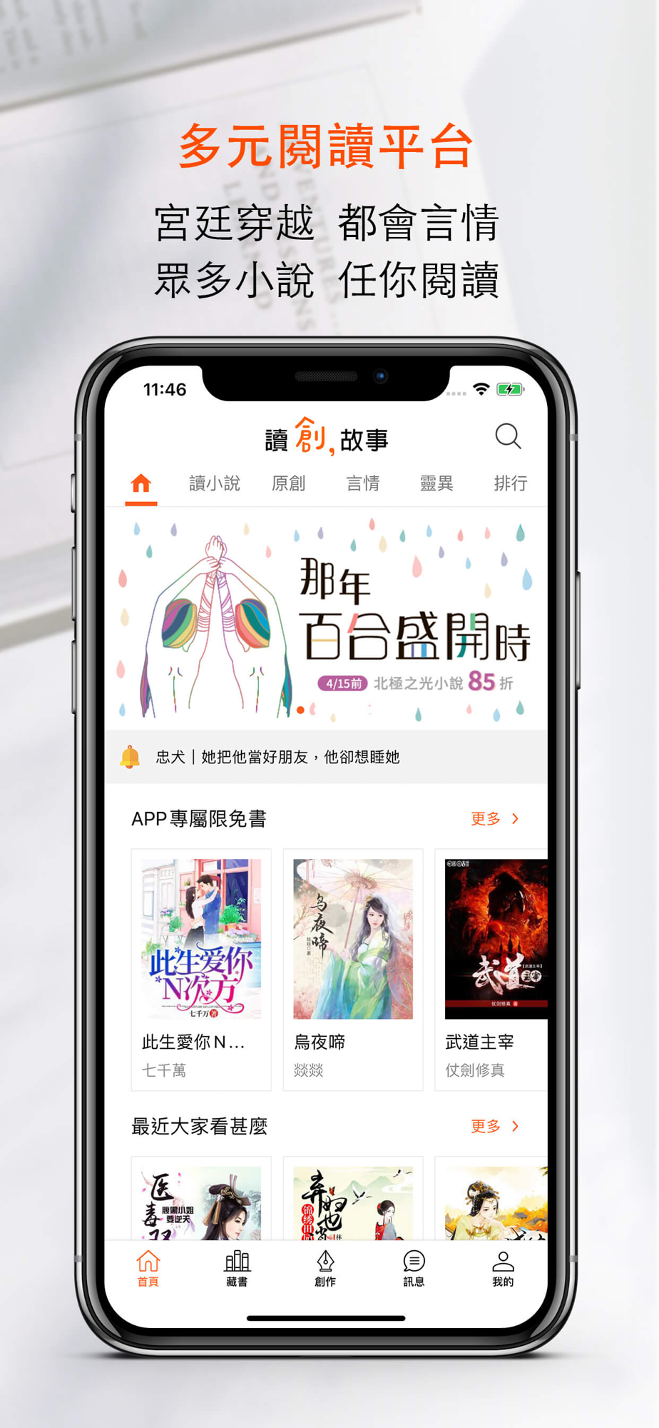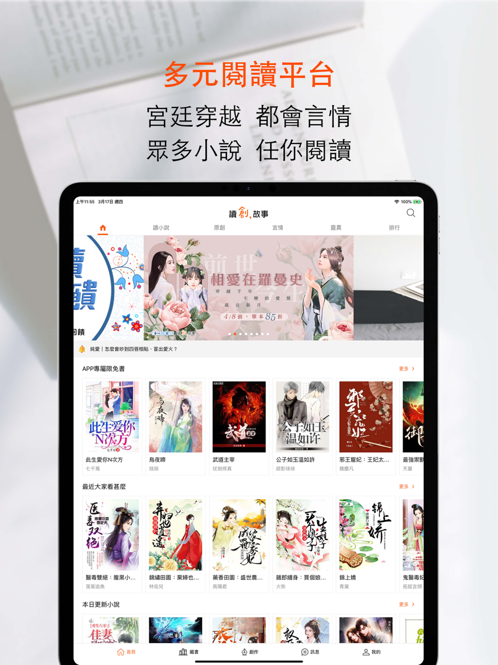 匯集網路小說、原創、言情、靈異等多元優質內容的平台。讀創致力提供作家們最完善的創作舞台、給予所有讀者最豐富的閱讀糧食。