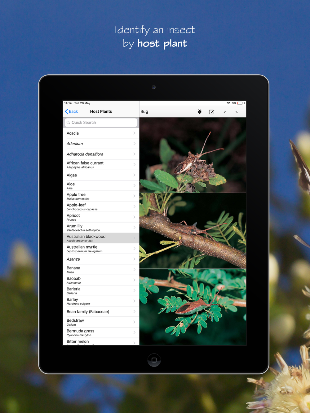 This app is also great for farmers, gardeners and agriculturists who need to identify insects based on the host plants they inhabit.