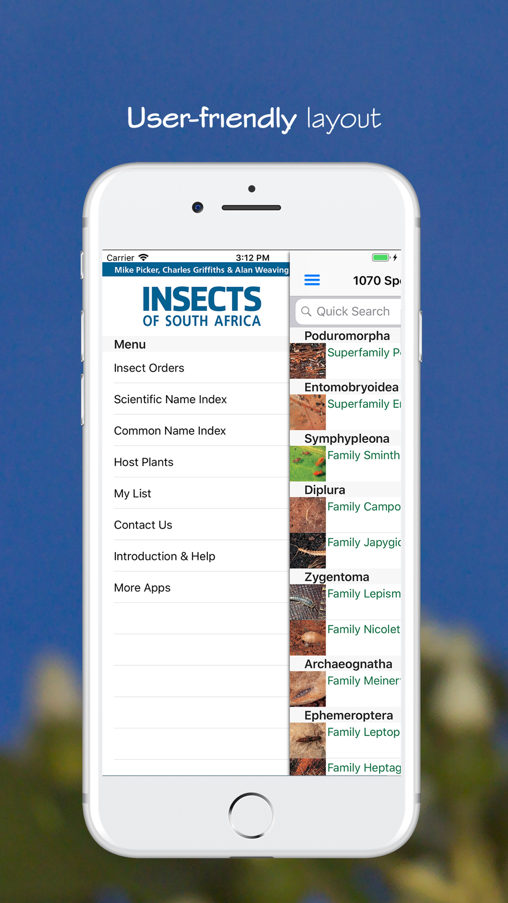 Insects of South Africa is an app designed for any and all insect enthusiasts. With detailed descriptions of over 1200 of the most ecologically important insects in the region, it’s the perfect field tool for professional and amateur entomologists. Many of the species described occur widely in the rest of Africa, making the app useful to students, nature conservation officers, game rangers, gardeners, farmers, tourists and anyone with an interest in natural history.