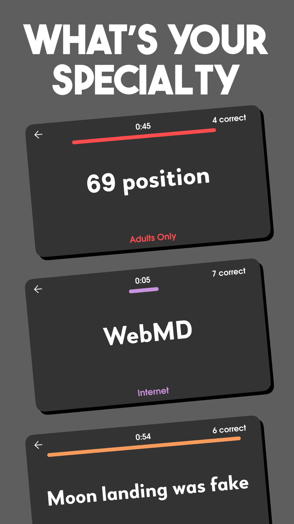 You get the word you have to explain to your friends. Set up a time record that your opponents have to beat, On-screen controls