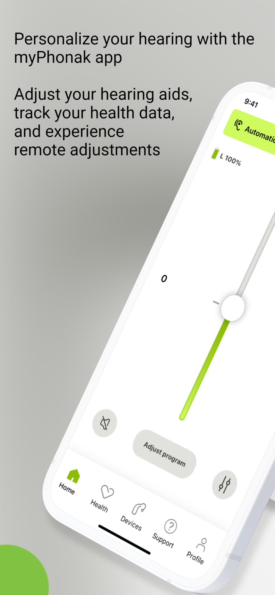 The new myPhonak comes with improved functionality and a new design to make your hearing experience as seamless and as tailored to your needs as possible. myPhonak provides you access to enhanced hearing controls and personalization options for your Phonak hearing aid(s) in addition to tracking your health data.*