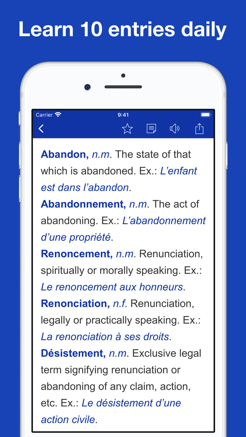 - Learn 10 entries daily