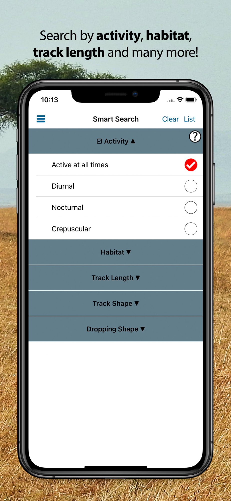 • New Smart Search filters – search by activity, habitat, track length, track shape and dropping shape