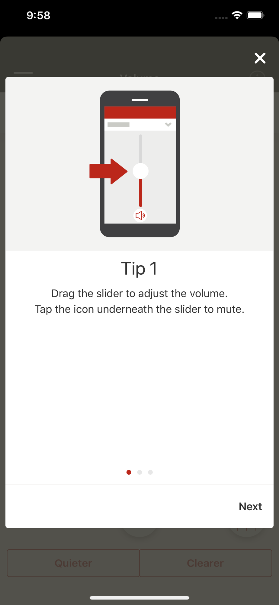 - Adjust the balance between background noise and the streamed signal when listening to streamed Bluetooth® audio* or watching television in the TV Connector program (requires optional TV Connector accessory)