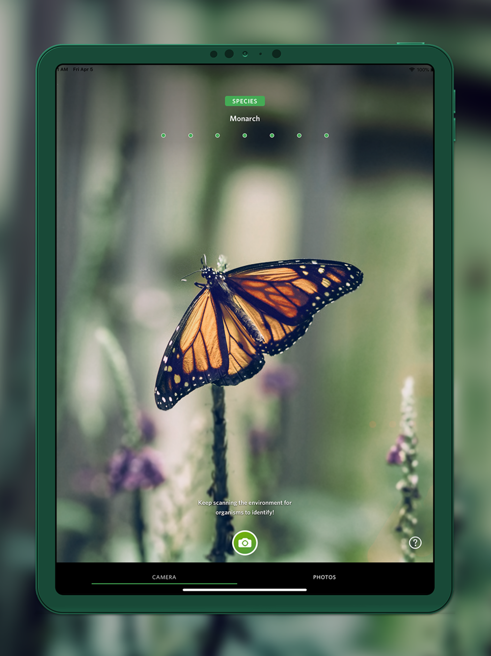 Use the power of image recognition technology to identify the plants and animals all around you. Earn badges for seeing different types of plants, birds, fungi and more!