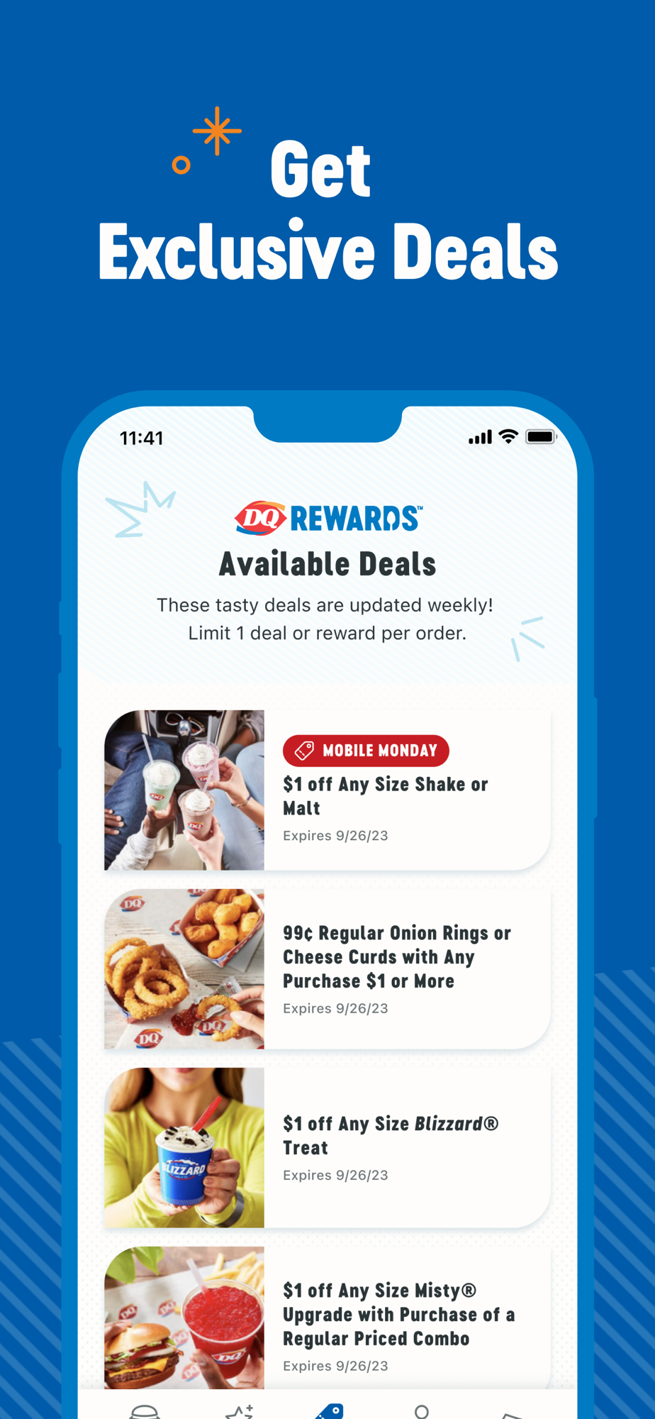 Order from your phone, save with exclusive deals, earn DQ® Points, and redeem great food rewards all in the App!