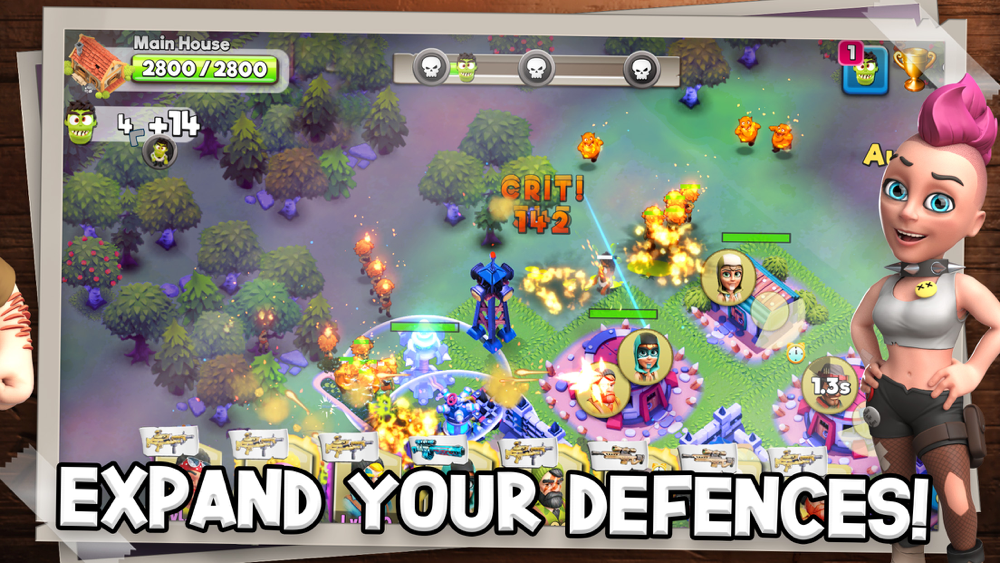 Discover more than 60 different survivors who can join your fight, each with unique stats, backstory and personalities. But stay alert! The walking dead will evolve and adapt to your survivors’ rag-tag battle tactics, with dozens of creatures emerging every night. Luckily, your scrappy squad has more than 100 weapons to fight against the hordes, along with sneaky spike traps, freeze contraptions, and flare guns.