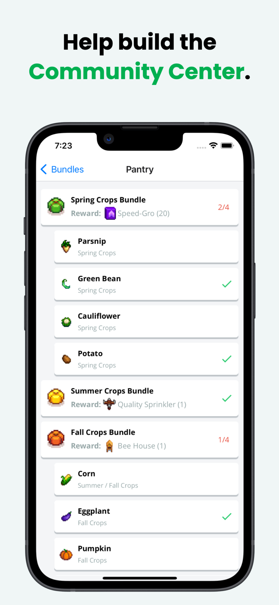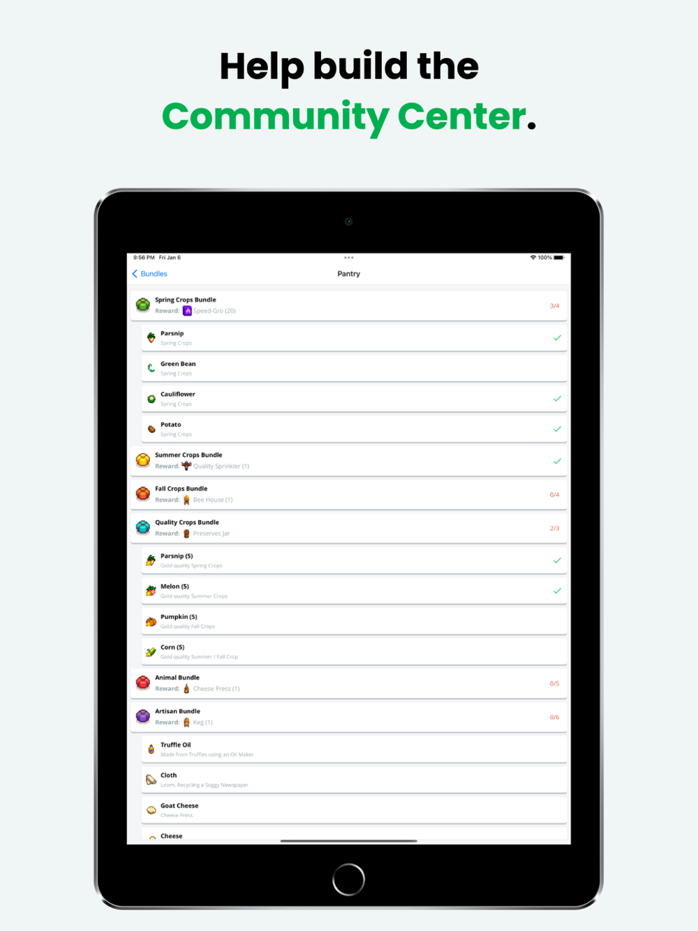 - Checklist to keep track of your Bundles in the Community Center