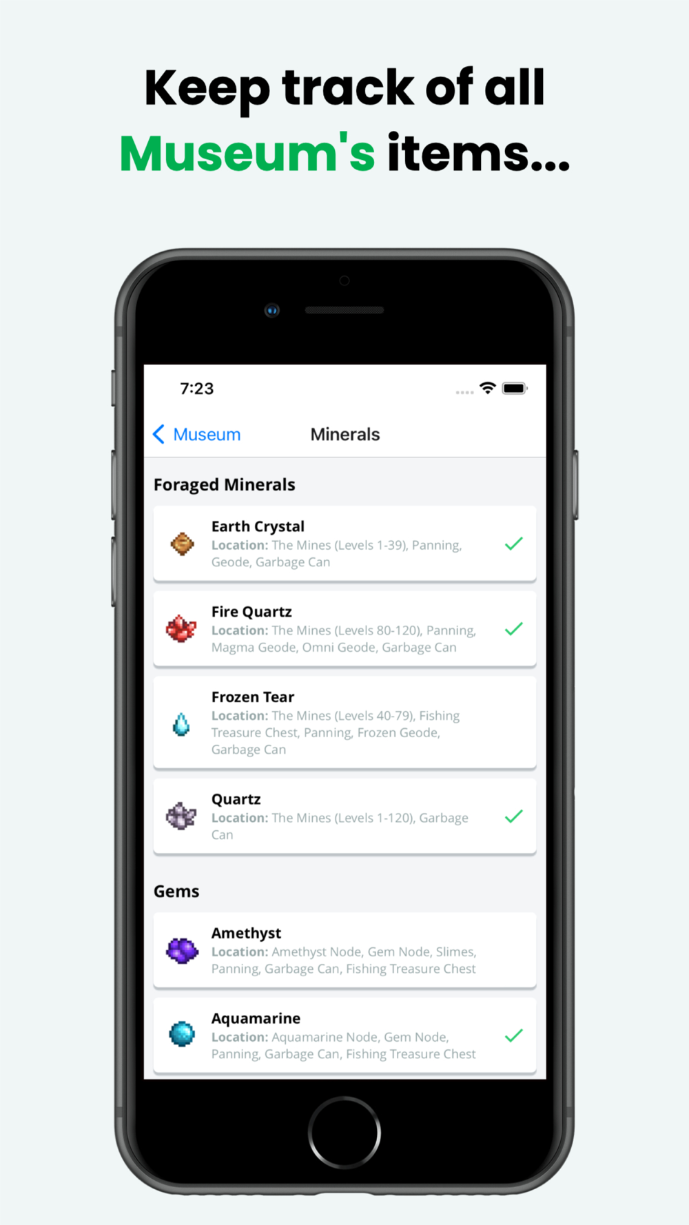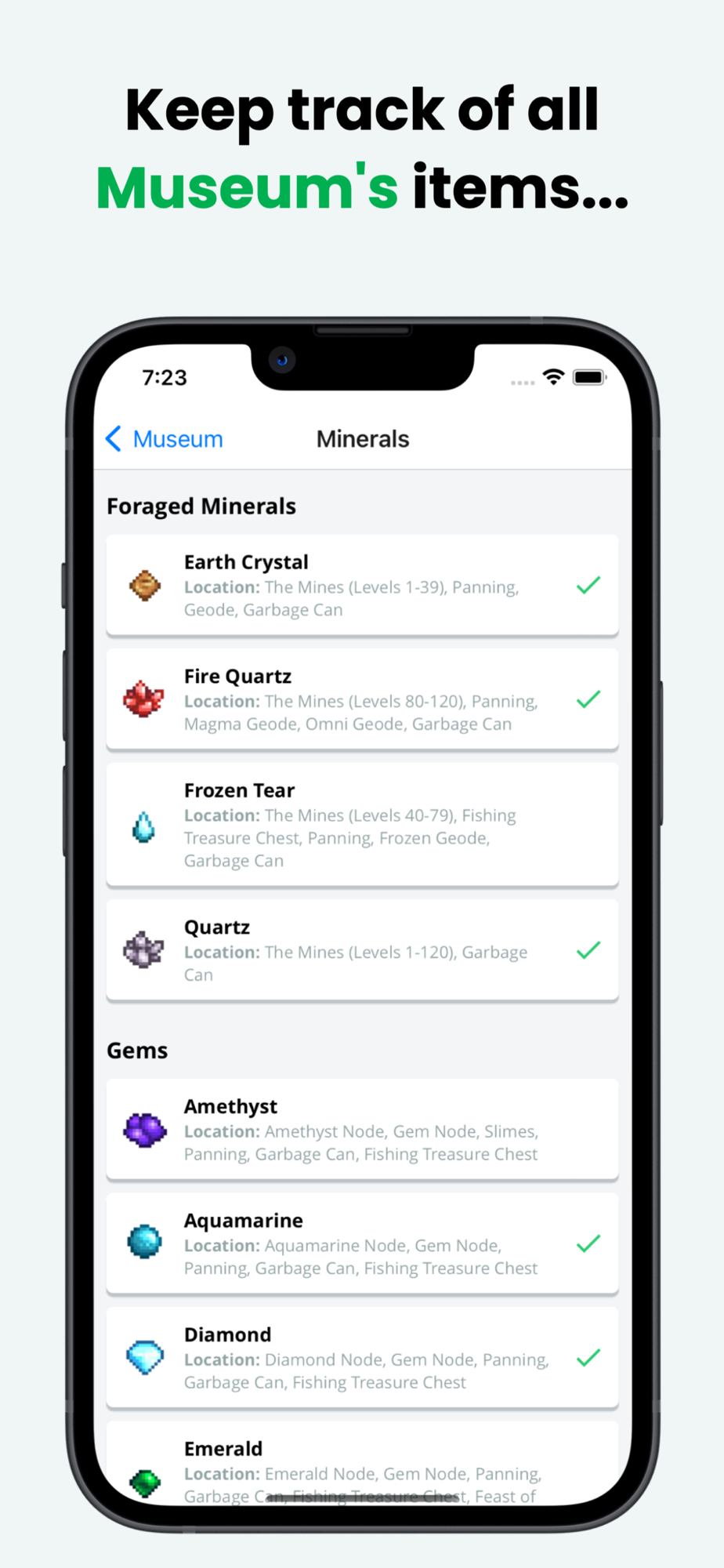 - Check what items you're missing in the Museum and where to find them