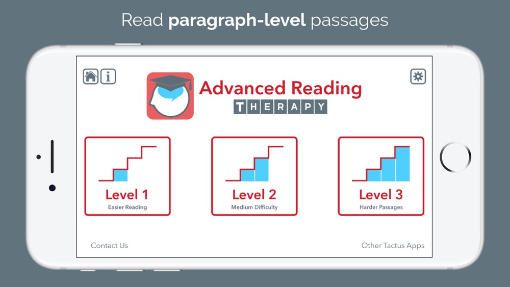In all Tactus Therapy apps for speech therapy, you'll get wifi-free use, no log-ins, and no subscriptions. The activities are based on researched techniques that work. The content is designed with adults in mind, yet can easily be used with older children and teens. Support is built-in to encourage independent use for home practice while being flexible for in-clinic use with a qualified clinician.
