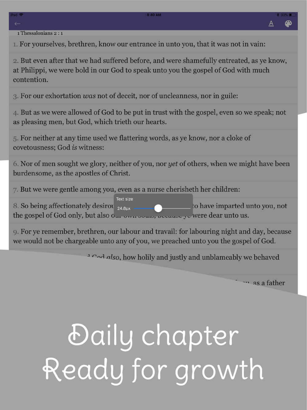 KJV Holy Bible with King James bible verses that show up every morning to motivate you. With KJV Bible you are sure to know the word of God well. Download your KJV Bible. Getting God's word makes