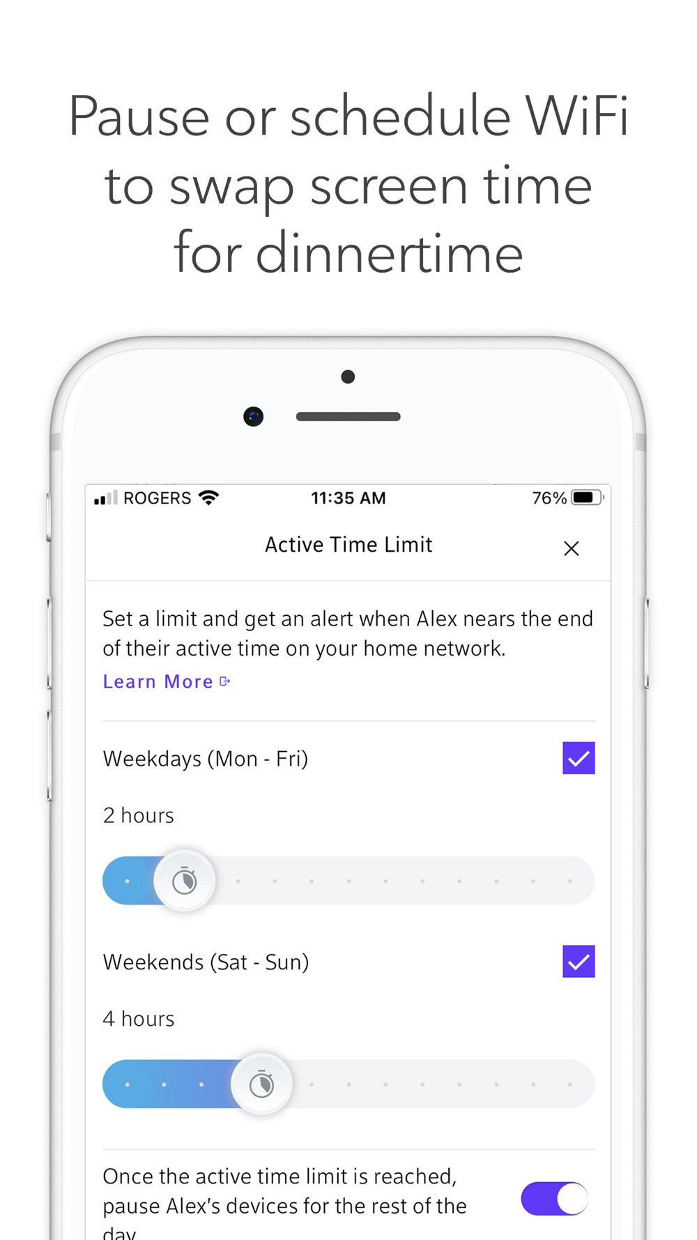 • Pause or schedule WiFi whenever you choose - create Downtime Schedules or set Active Time Limits