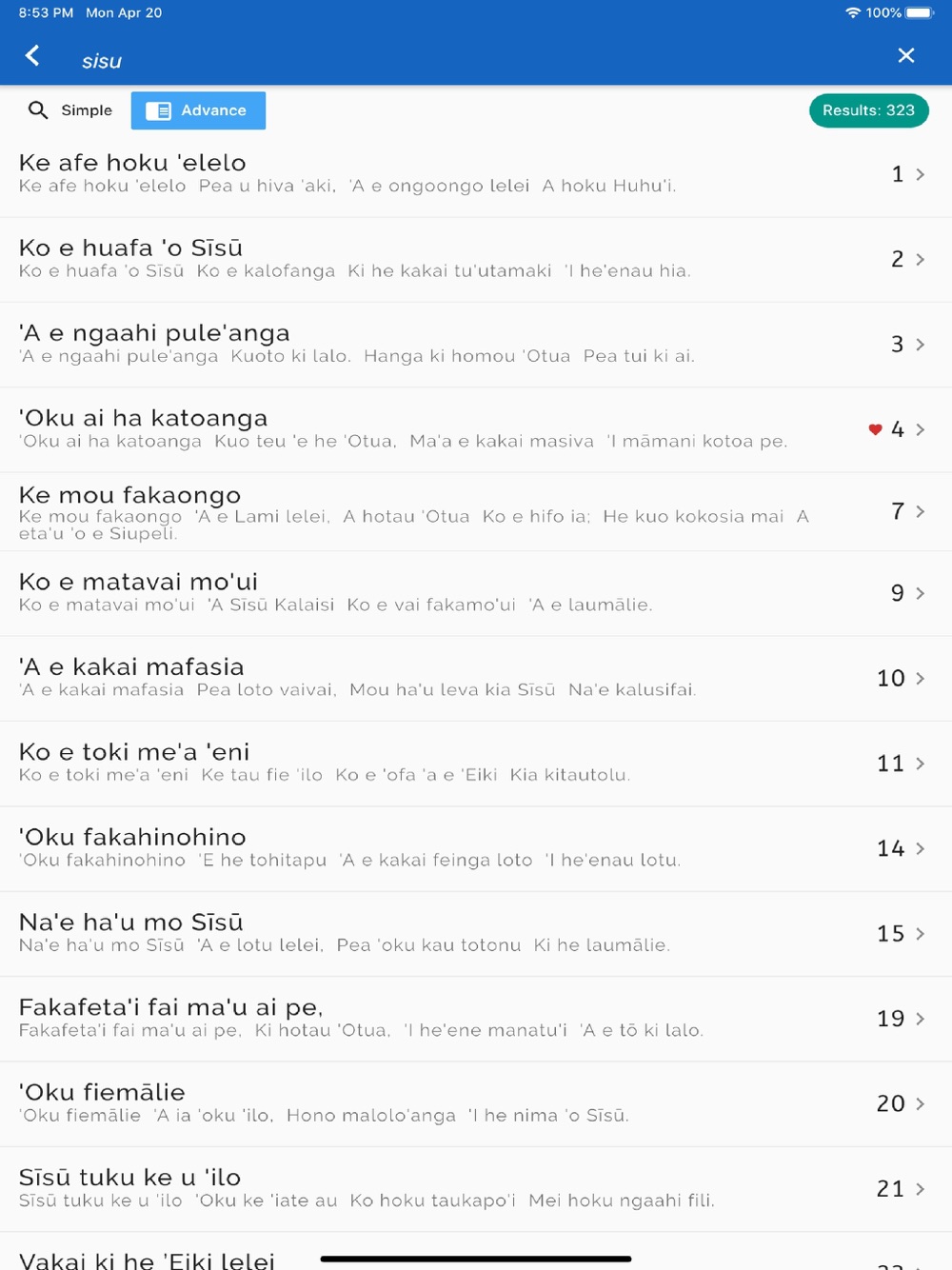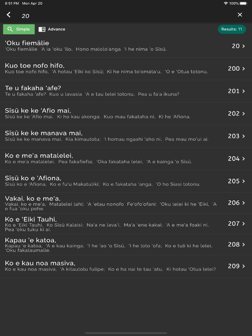 - Search by "title" or by "number" or by any phrase(s). [ only Tongan phrase(s) allowed :)]