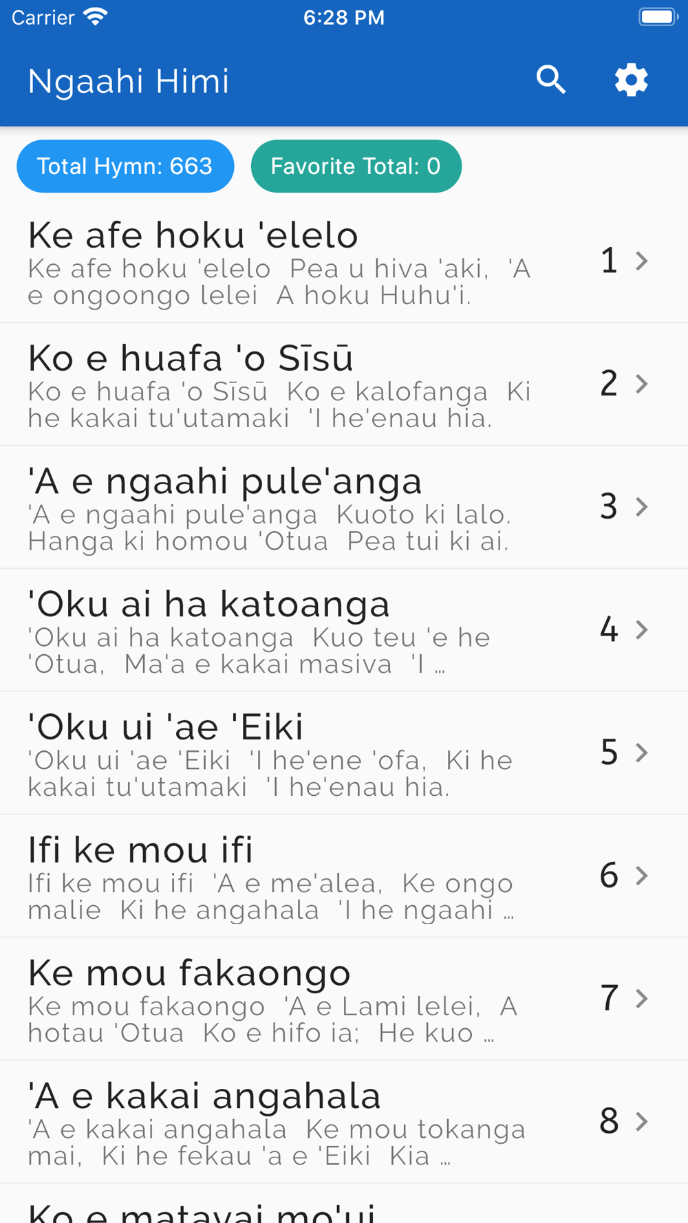 Just a tip for the users when searching for a hymn, you can search using numbers or if unsure of the hymn number you can search by Title or a phrase from any verse. Searching with or without special characters(eg: Sisu or Sīsū), Uppercase or Lowercase(eg: FAKAFETA'I or fakafetai) will work either way