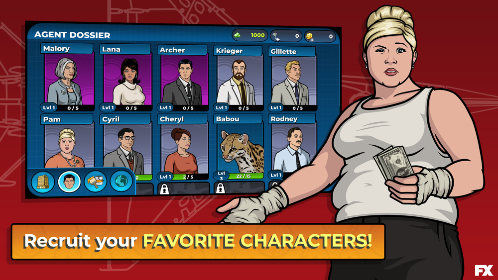 Touch and tap your way through animated stories from the show while automating your simulations in true idle game fashion. Join Cheryl in her attempts to deal with Babou, help Archer deal with the impending A.I revolution, and coach Cyril on getting back together with Lana, again!
