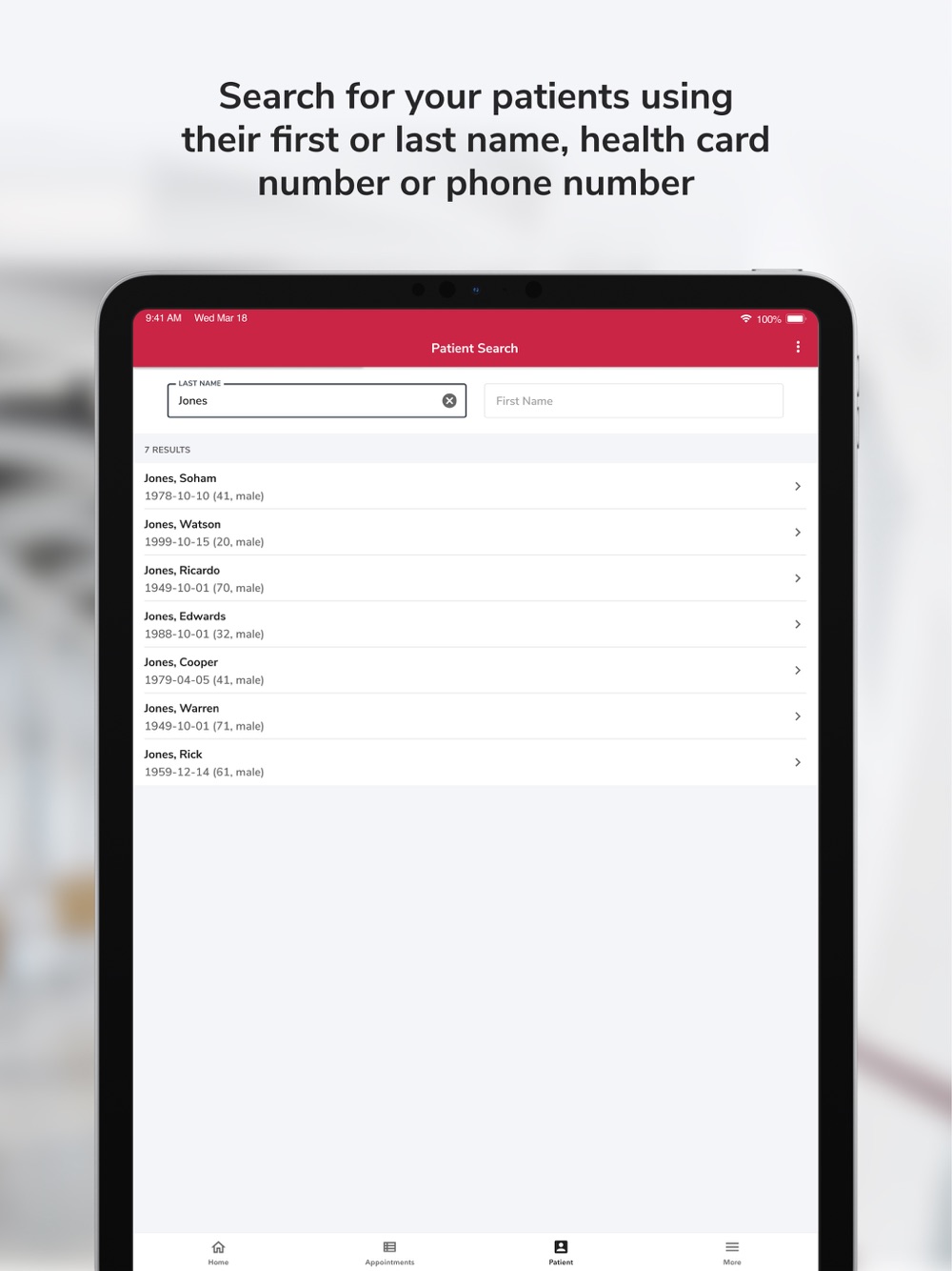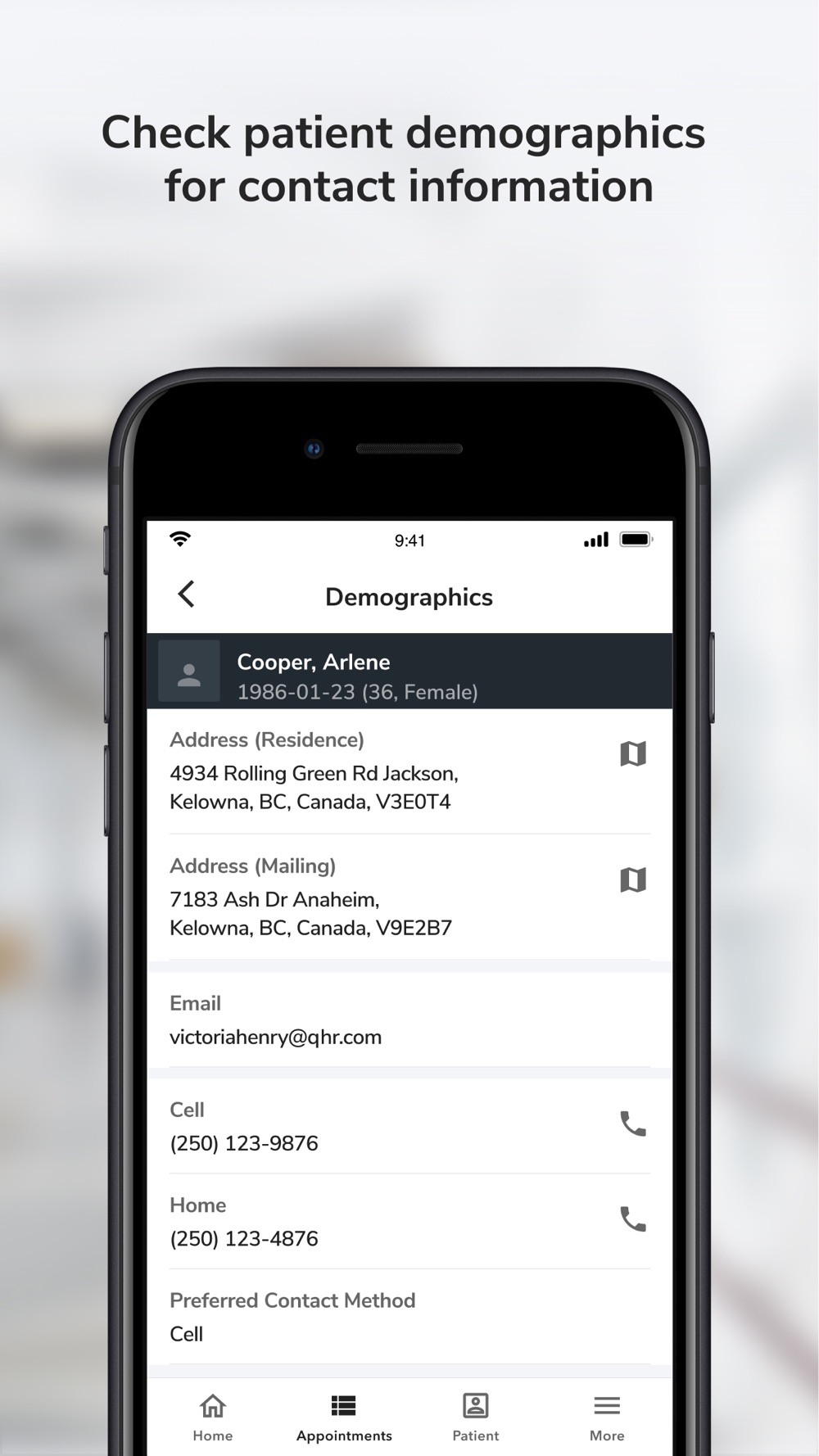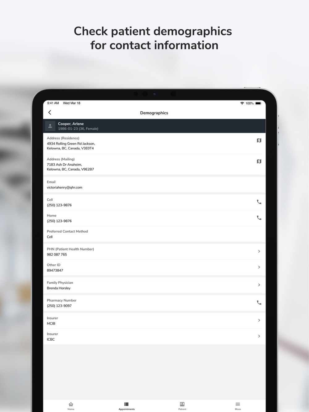 - Call patients from the app or search their address with your Apple Maps ahead of house calls