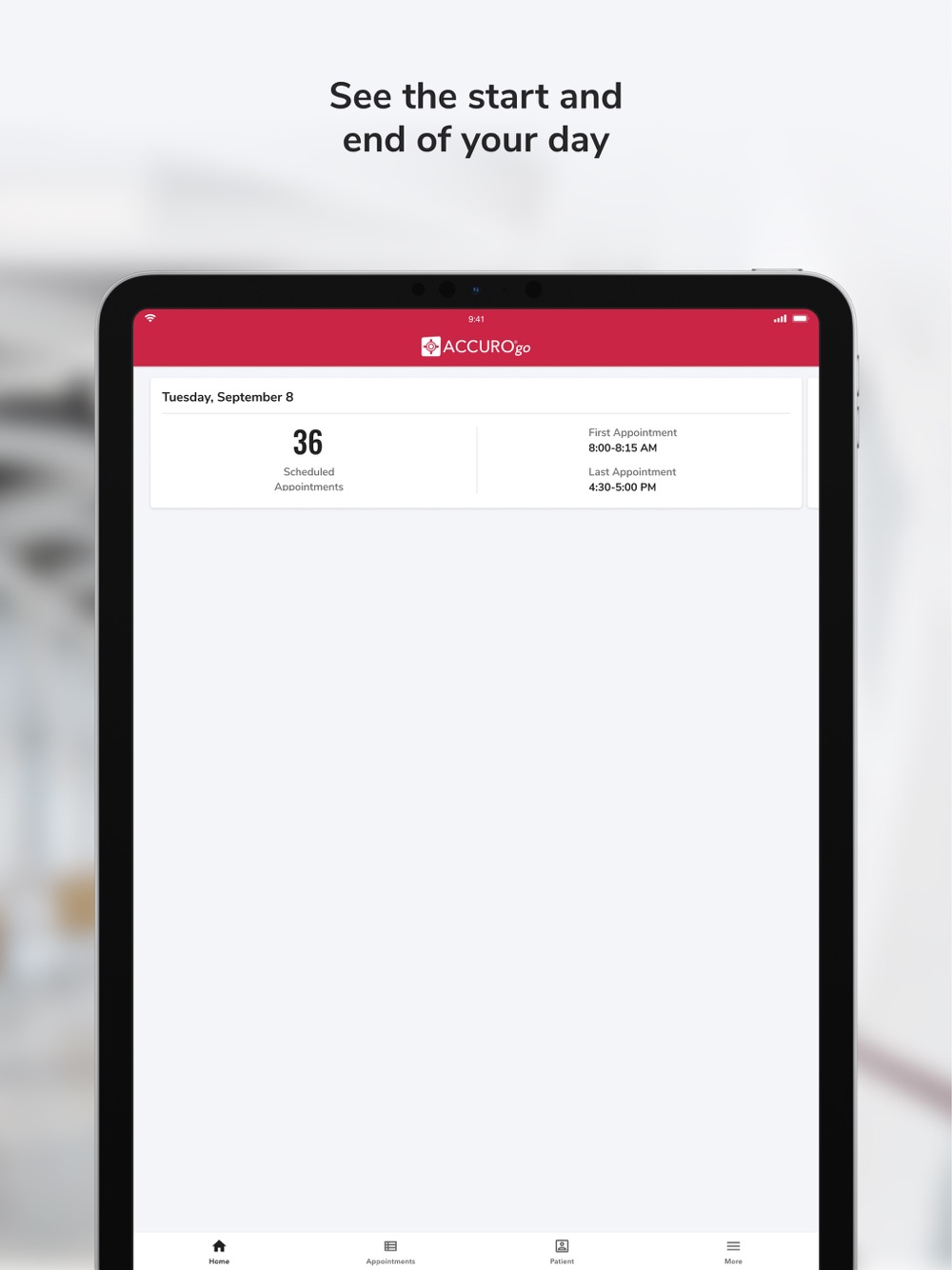 ACCUROgo is a companion app to AccuroEMR that lets you access a few key features on the go: view patient info, take and upload photos directly to patient charts, and see your current and upcoming appointments.