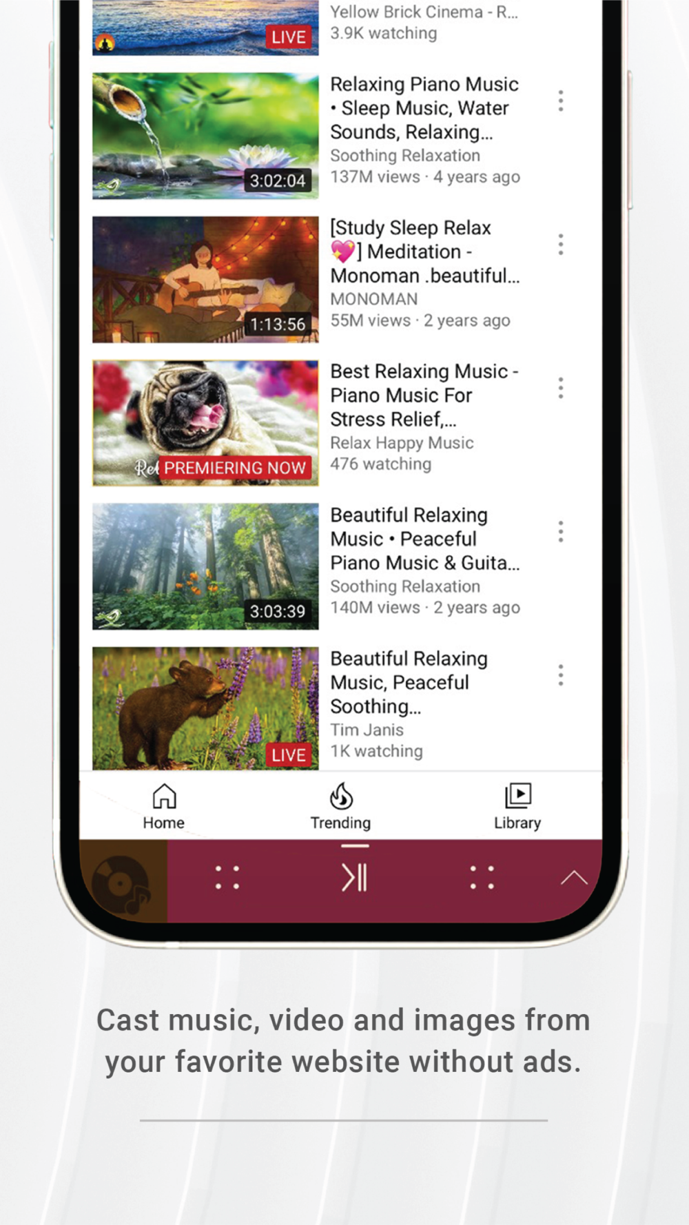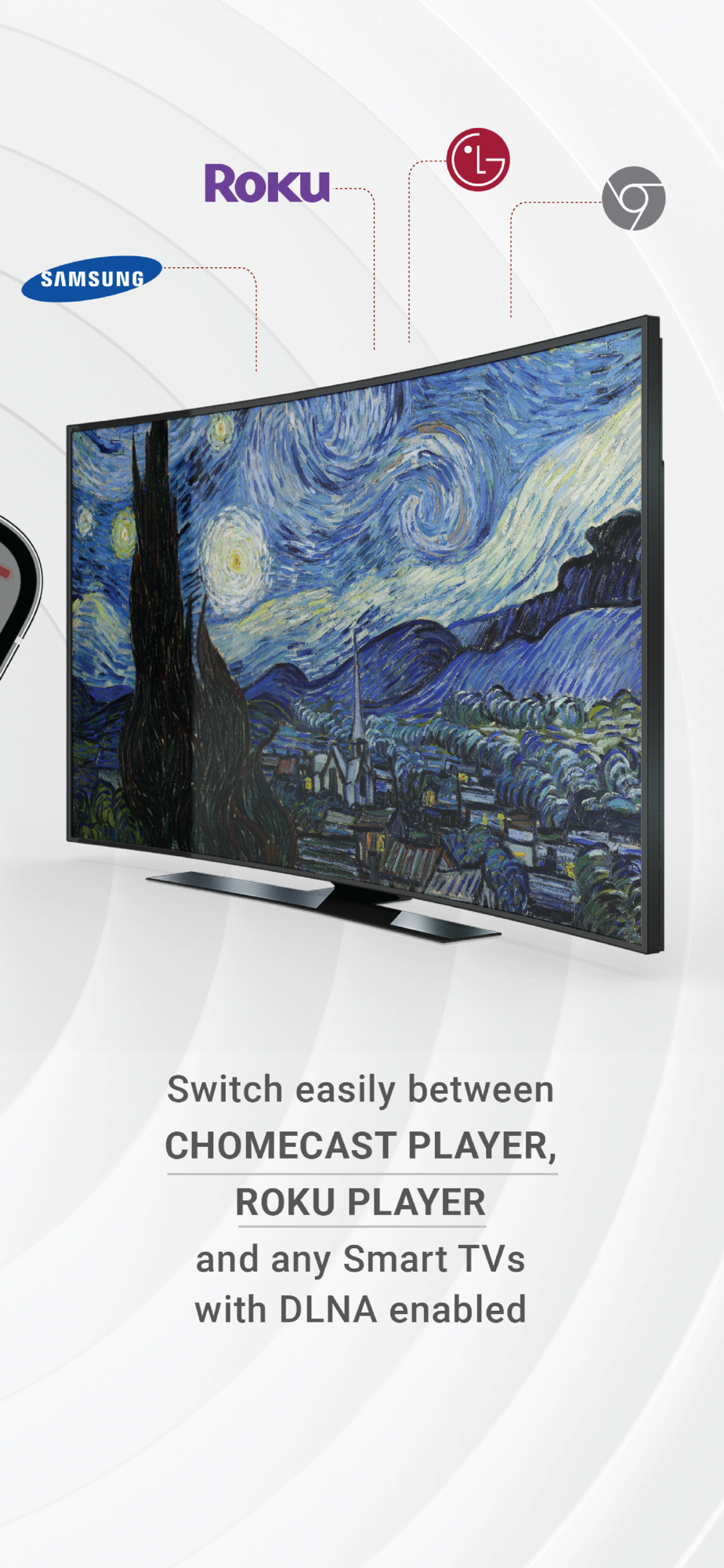 In order to pair your phone with these devices, please make sure that both are connected to the same WiFi network. Wait for at most 20 seconds for Smart Cast to find these devices within your network. Then, you can select either a Chromecast device, a Roku device, or a smart TV, and choose which photo or video from the Gallery that you want to stream. You can also use the built-in Browser to search for music, photos or videos from any popular entertainment website and Smart Cast will help you stream these contents to your big screen.