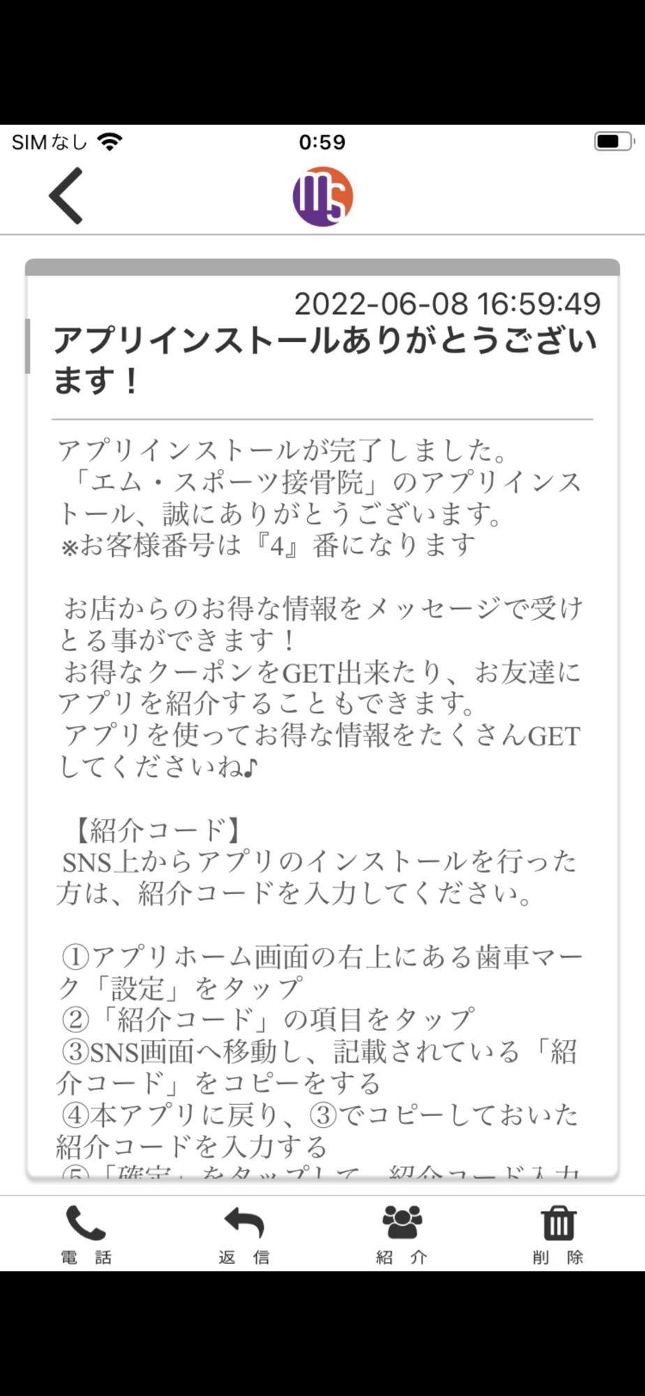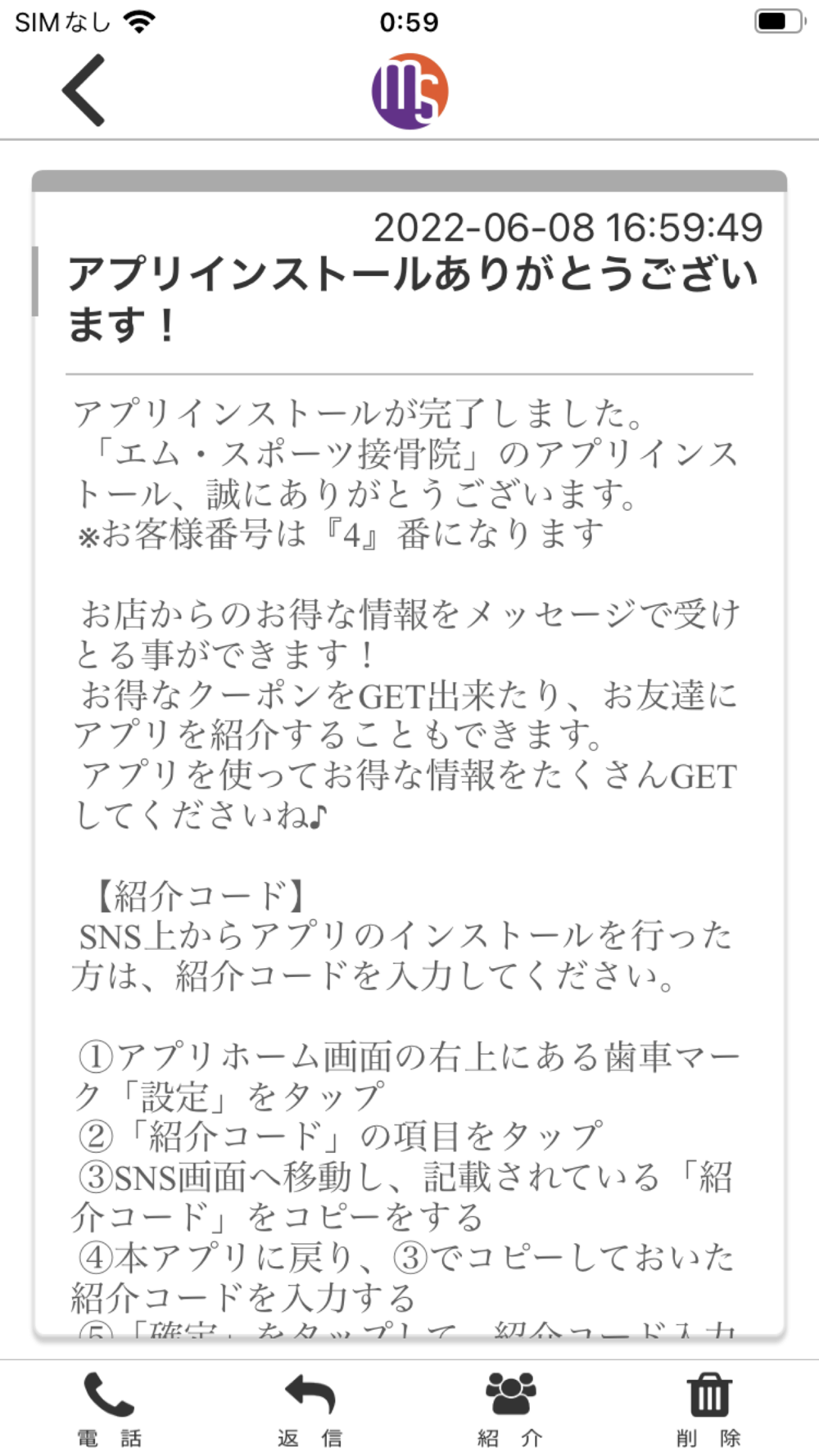 エムスポーツのアプリをSNSを通じてお友達に紹介する事ができます。