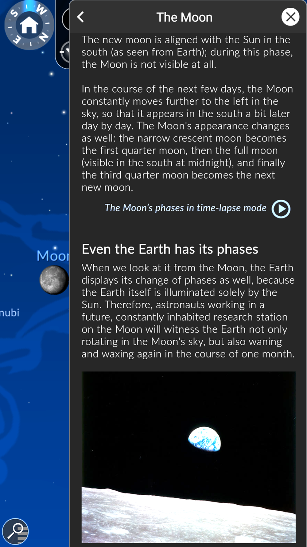 The app contains more than 9,000 stars, 88 constellations, hundreds of moons, asteroids and comets, as well as 200 spectacular deep-sky objects - all with accurate position calculation and motion tracking in real time.