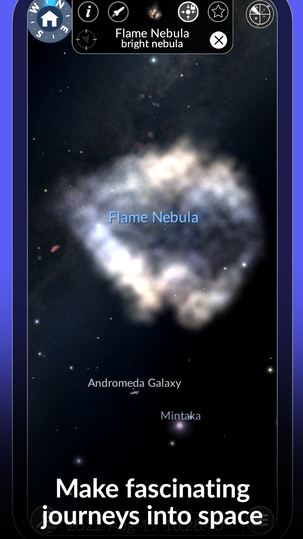 • Take breath-taking flights through space to distant stars and colorful nebulae