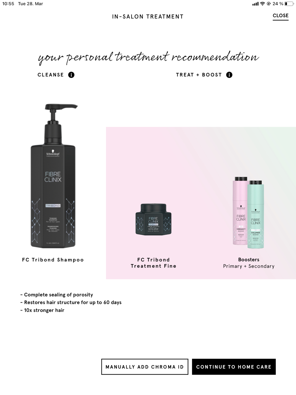Stylists can use the app to guide the salon session, from the consultation about the client’s hair condition and routine, through the hair analysis and to the recommendations. The SalonLab Smart Analyzer is an essential component for the analysis and connects to the app via Bluetooth. The Analyzer uses near-infrared spectroscopy to evaluate the inner hair condition at a molecular level, delivering insights beyond the human eye. The app then visualizes that data for you in a clear way and provides recommendations for products and services based on the analysis and consultation. Each stylist on your team has an individual account with SalonLab where they can perform hair analyses and see client history.