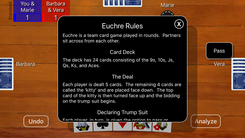If you are new to the game, Euchre Card Classic has a rules view to teach you how to play.