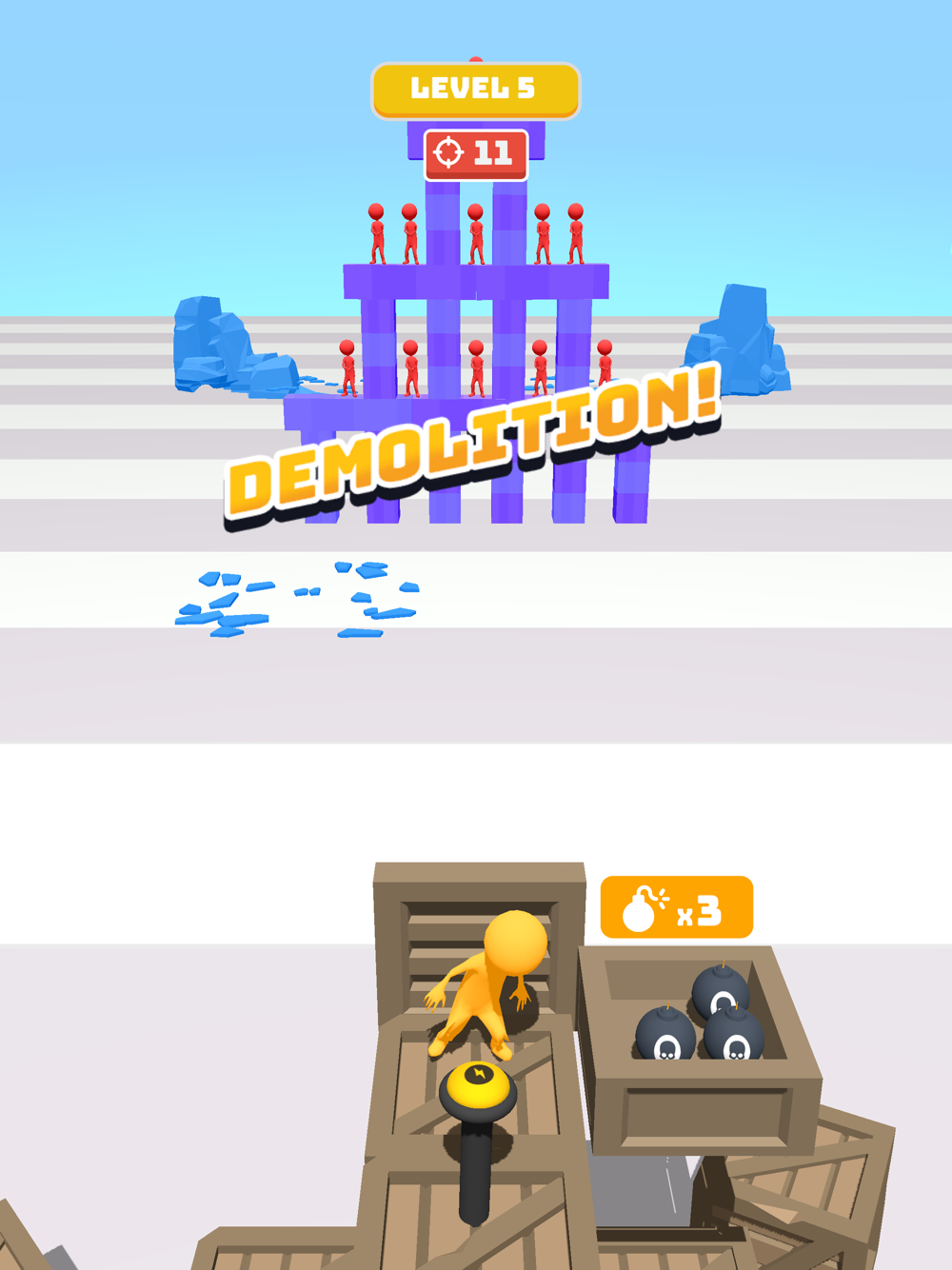 Use the buttons to unleash mega destruction with a giant hammer or cannon balls!