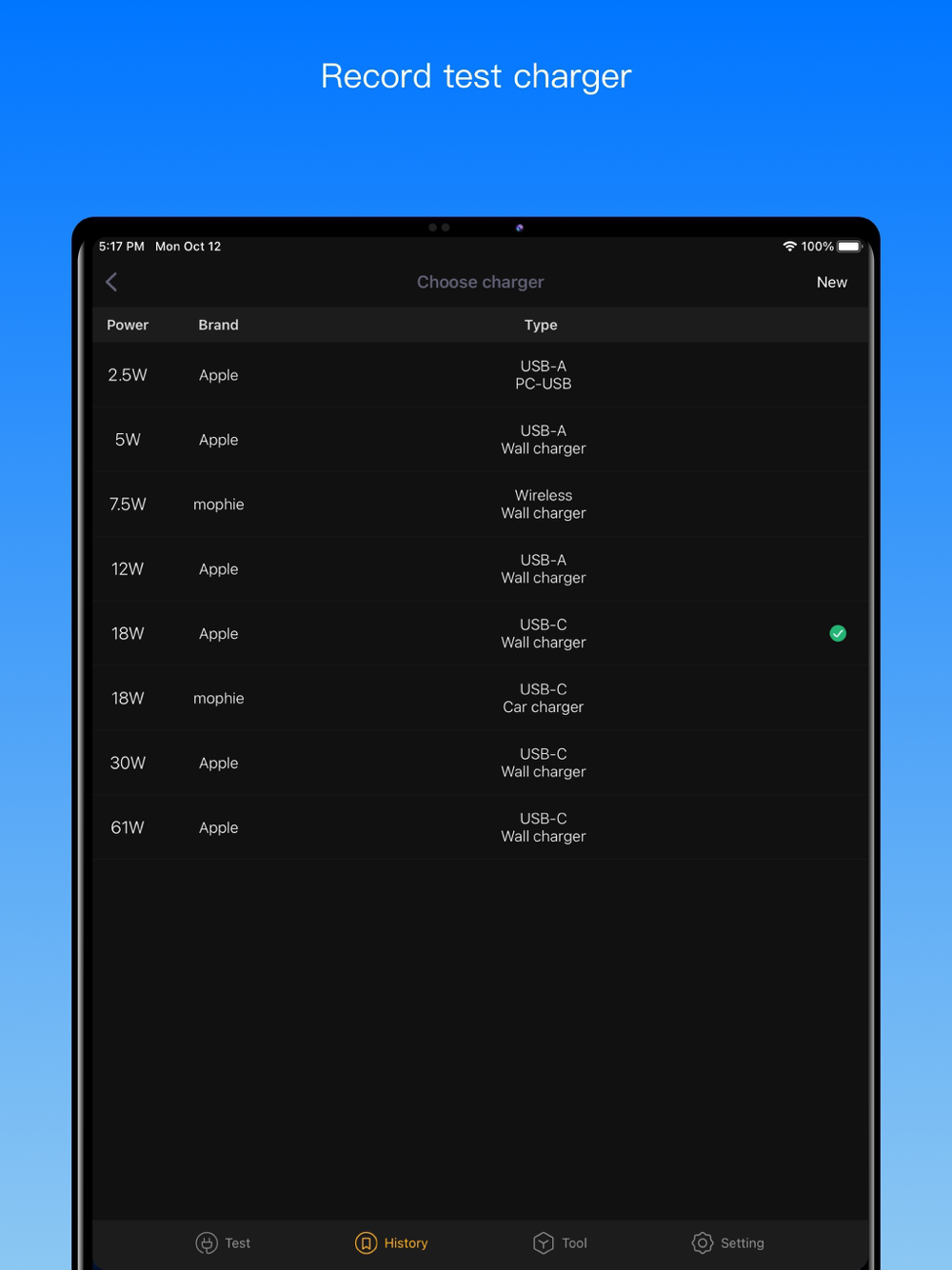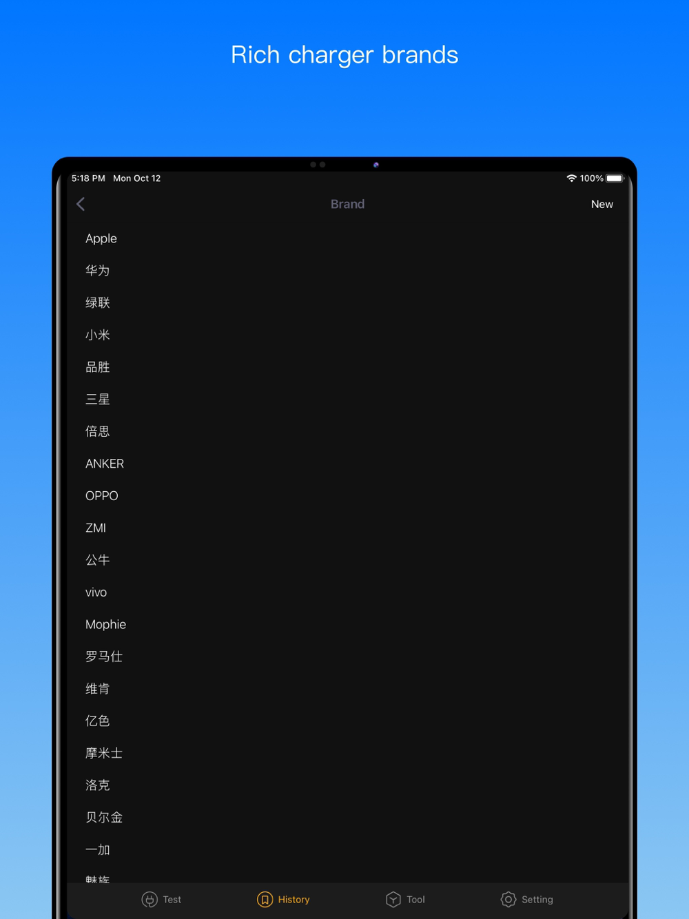 New feature of automatic charging test is comming. After connecting to the charging cable, the Charger Master can automatically start the test without manually opening the APP. In [Tools-Automatic charging test], you can view the detailed tutorial~ (iOS14 system required).