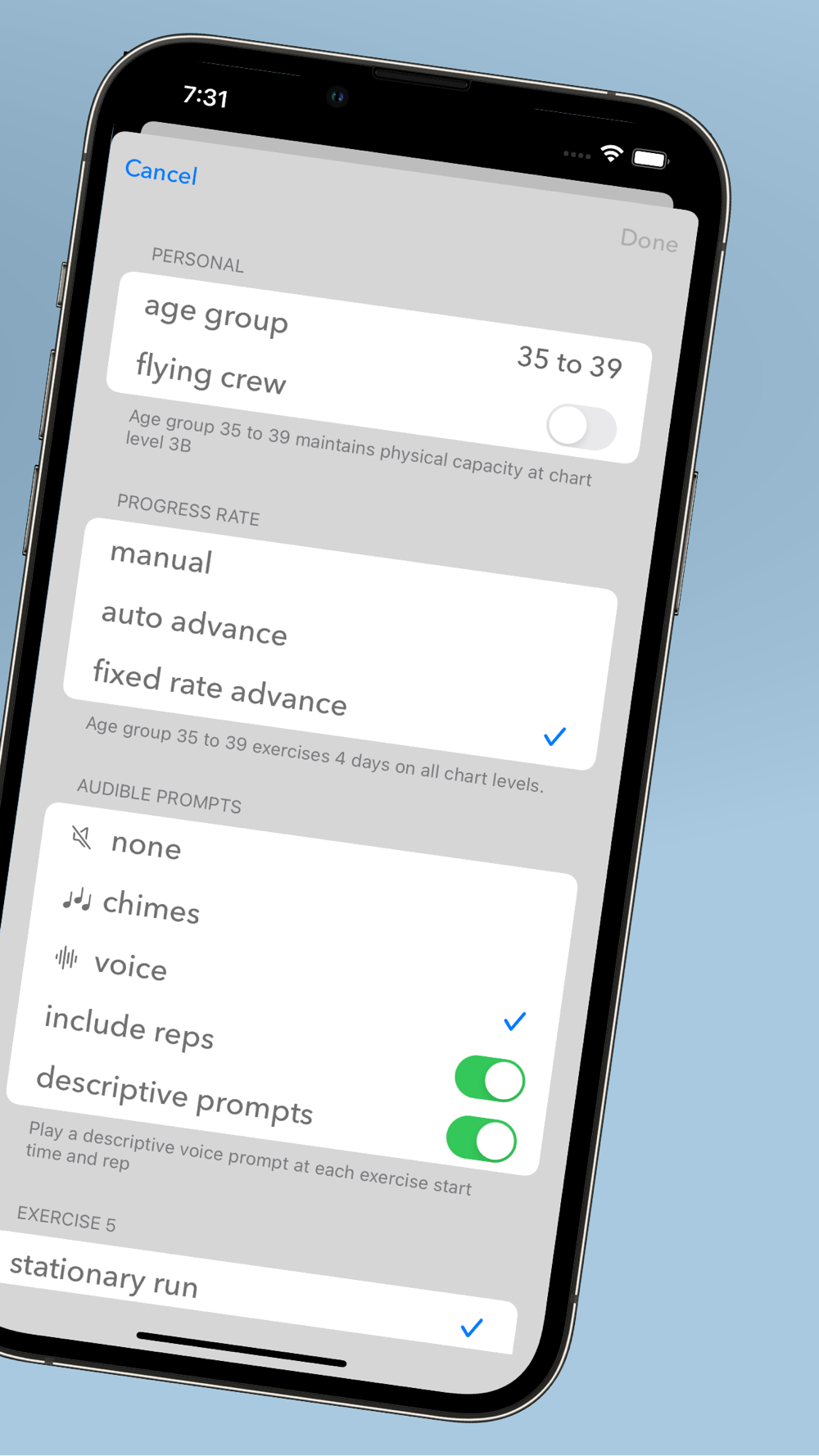 Beautifully designed and simple to use while you workout - just tap a single button to control. And now with audio prompts, it’s better than ever. Whether you are a seasoned 5BX exerciser or just starting out, this app is a great way to track your progress.
