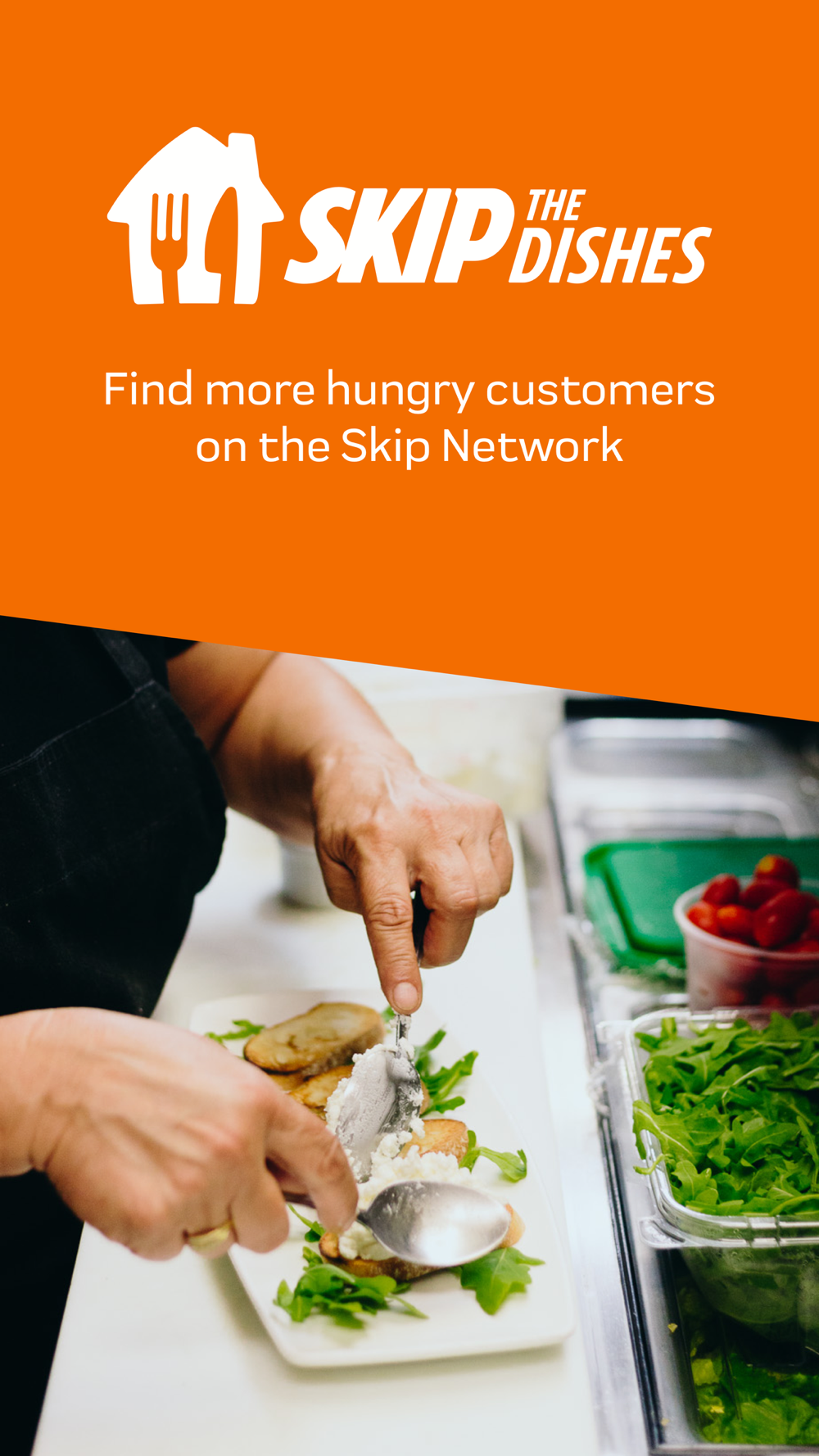 Inquire about restaurant partnership opportunities at skipthedishes.com/restaurant-owners before getting started with the app.