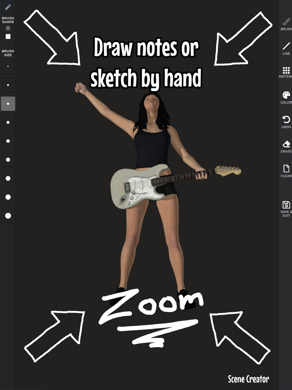 App comes with basic drawing tool which you can use to add hand drawings, notes, arrows for motion etc to existing images. Or you can draw the whole sketch by hand.