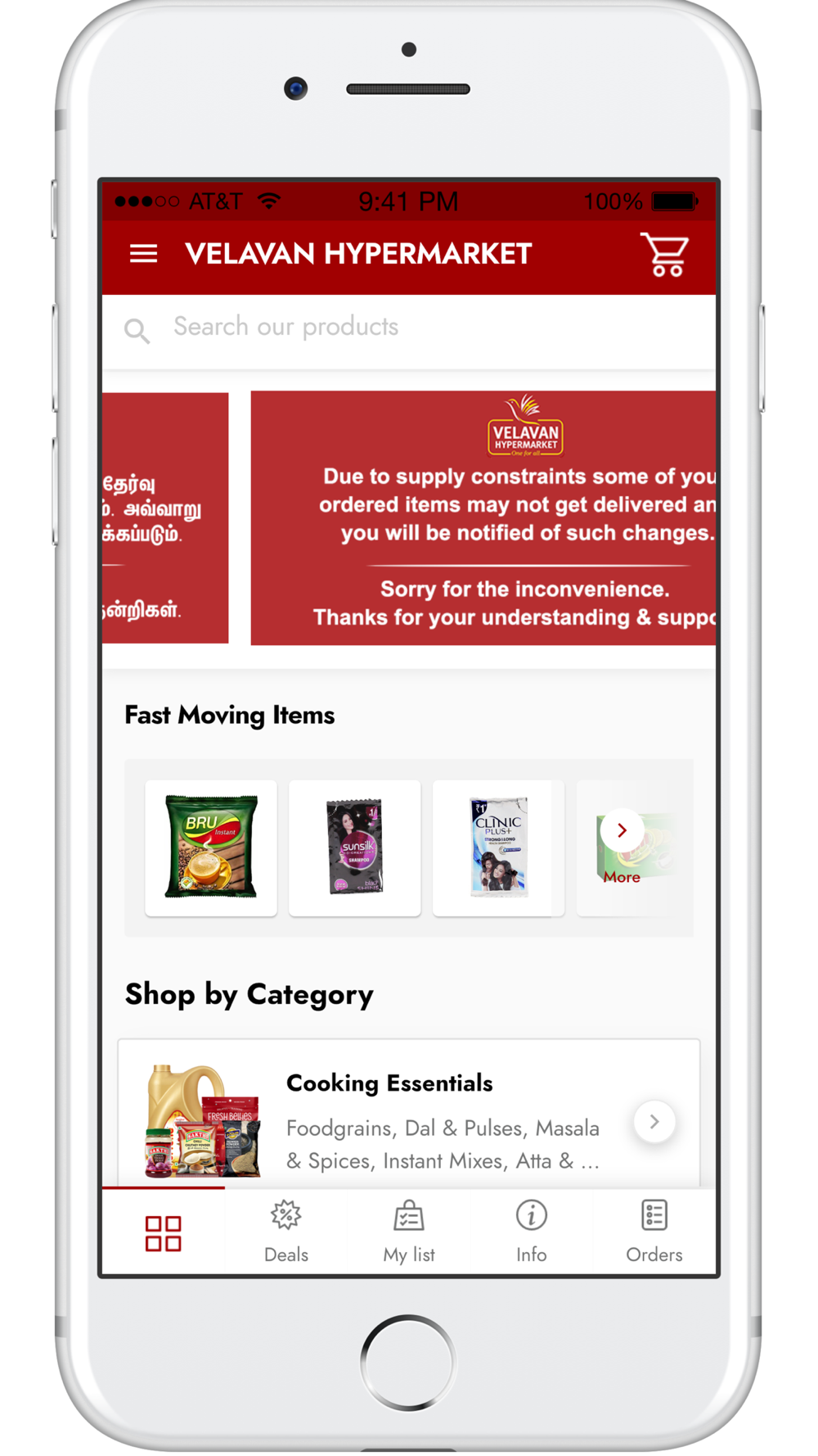 Velavan Hypermarket offering wide variety of products under Supermarkets, Grocery Wholesalers, Grocery Home Delivery Services. Now you can shop from your living room using our App.