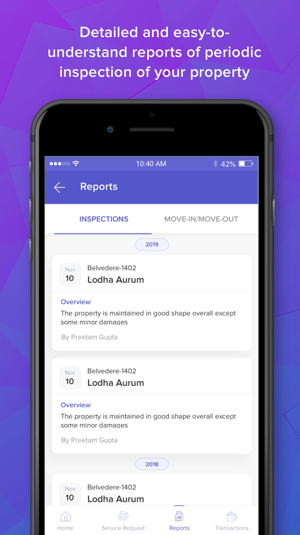 Periodic Inspections: Our team conducts periodic inspections of your property during the tenure. We share detailed and easy to understand reports with you.