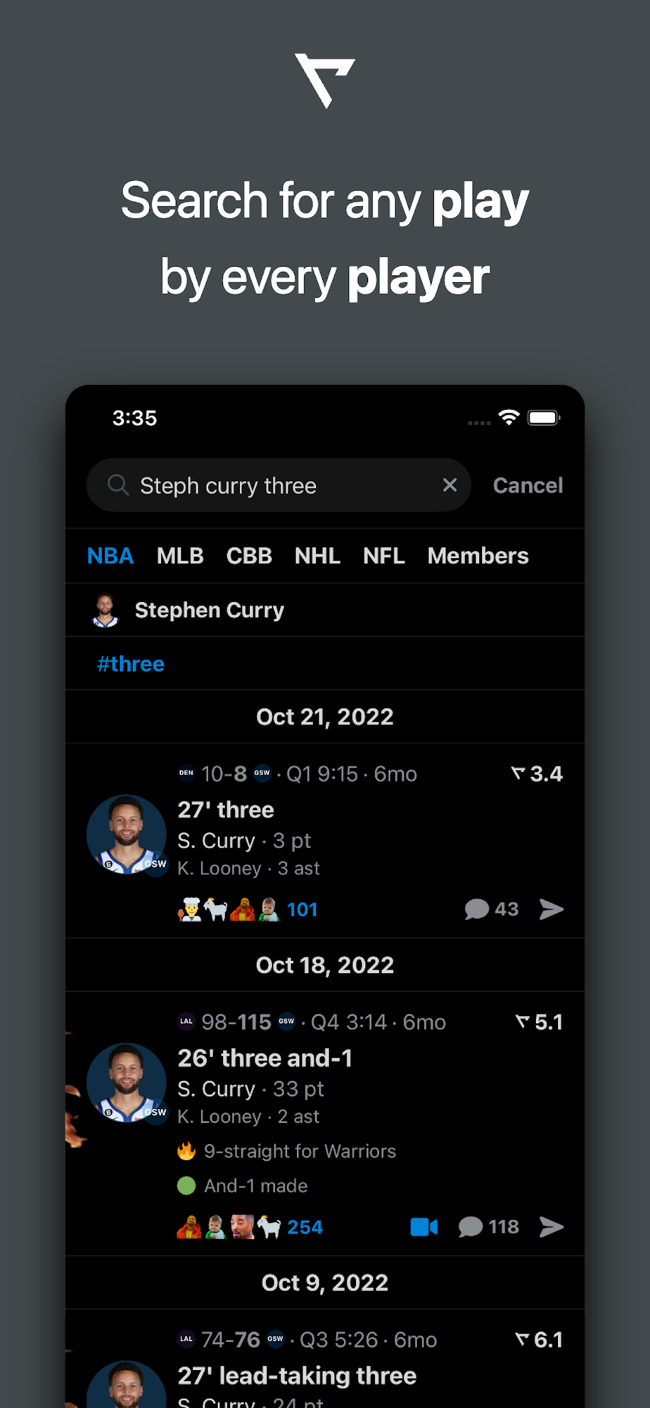 Real is the new way to discuss live plays and games, check scores, and follow your favorite players and teams.