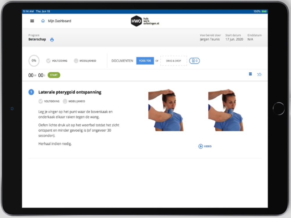 Via de HWO-app kunnen uw cliënten het oefenprogramma altijd en overal inzien en uitvoeren. Zo is de uitleg en het uitvoeren van het oefenprogramma niet meer tijd of plaatsgebonden en kunnen uw cliënten gemakkelijk en snel werken aan herstel.
